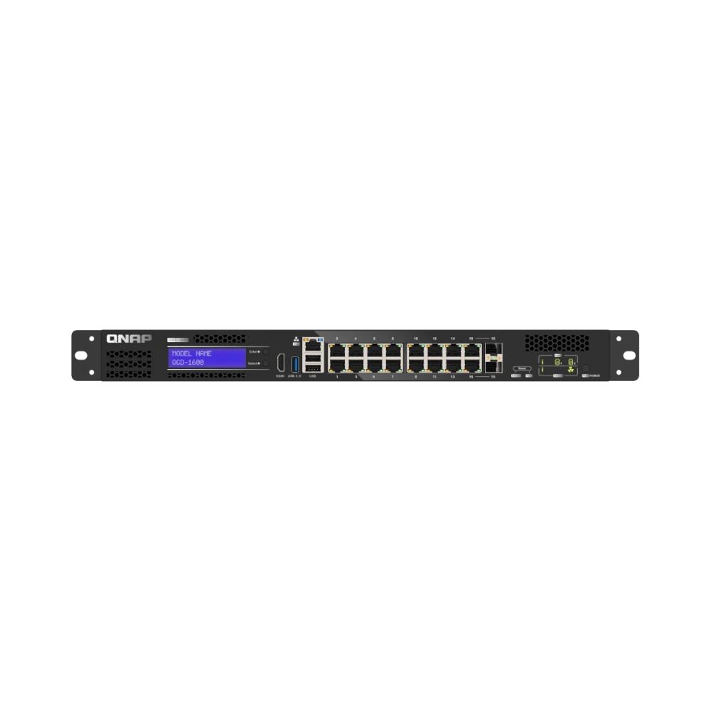 The QNAP QGD-1600-4G-US is a versatile network appliance that combines a fully managed 14-port Gigabit switch with a two-bay NAS in a single chassis. Powered by an Intel Celeron J4115 processor and 4GB of DDR4 memory (expandable to 8GB), it supports flexible connectivity and storage options for small businesses, home studios, or advanced labs. This device simplifies network management and data storage by integrating routing, protection, and file sharing into one compact unit.