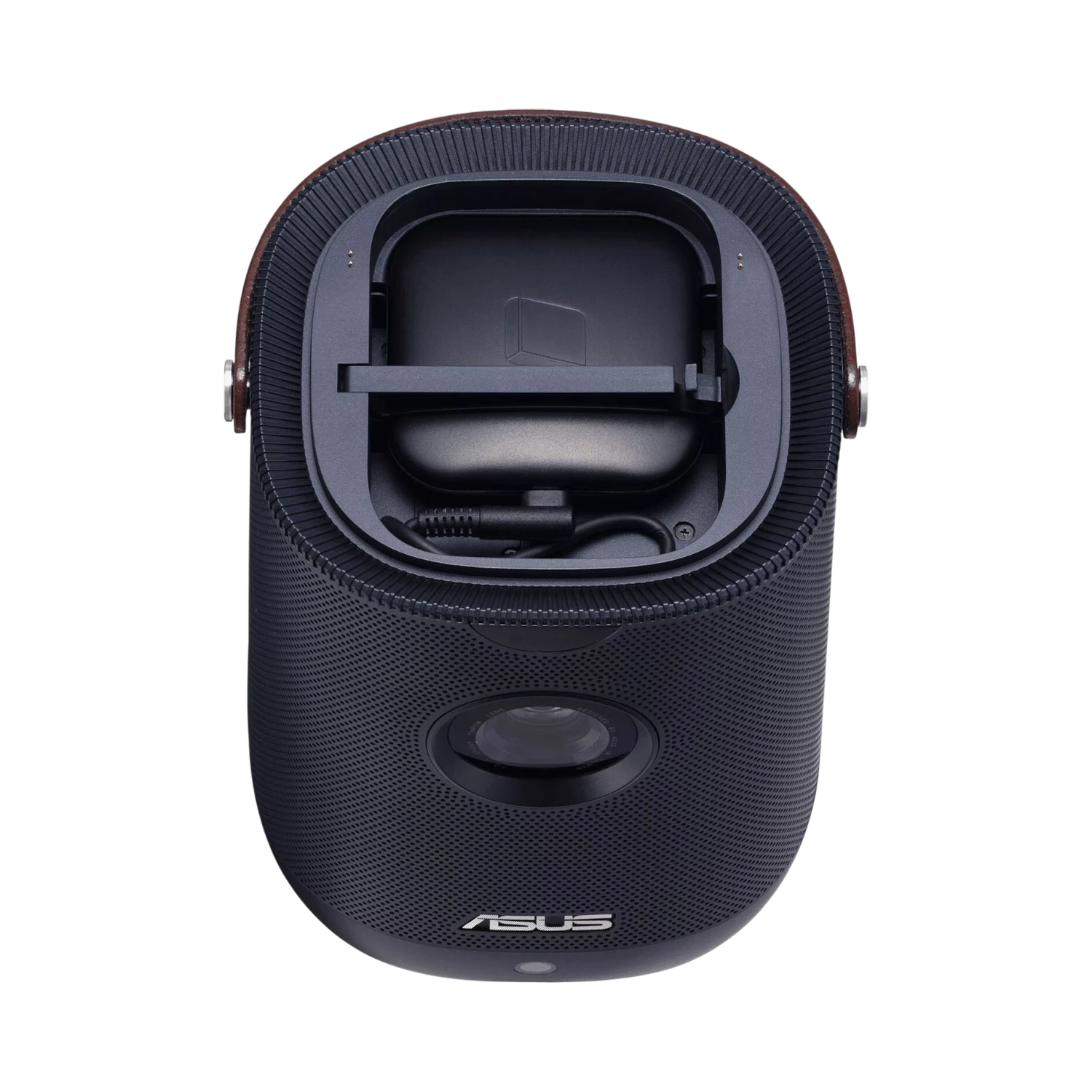 The ASUS L2 is a portable DLP LED projector designed to deliver sharp Full HD images with a native resolution of 1920 x 1080 and brightness of 400 ANSI lumens. It supports HDR10 for enhanced color and contrast, making it suitable for movies, gaming, and presentations in various environments such as living rooms, studios, or outdoor spaces after dark. Its built-in Android TV box allows direct streaming without extra devices, while the integrated battery provides up to 3.5 hours of cordless use.