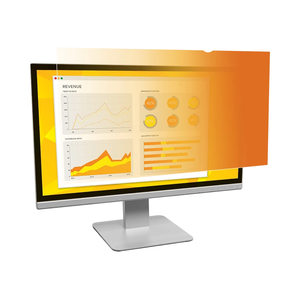 The 3M GF220W1B is a gold privacy filter designed specifically for 22-inch widescreen monitors with a 16:10 aspect ratio. It protects your screen content from side glances beyond a 60-degree viewing angle, making it ideal for open offices, public spaces, or customer-facing environments. The filter enhances on-axis clarity by nearly 20 percent compared to standard black privacy screens, ensuring text remains sharp and colors stay accurate while you work.