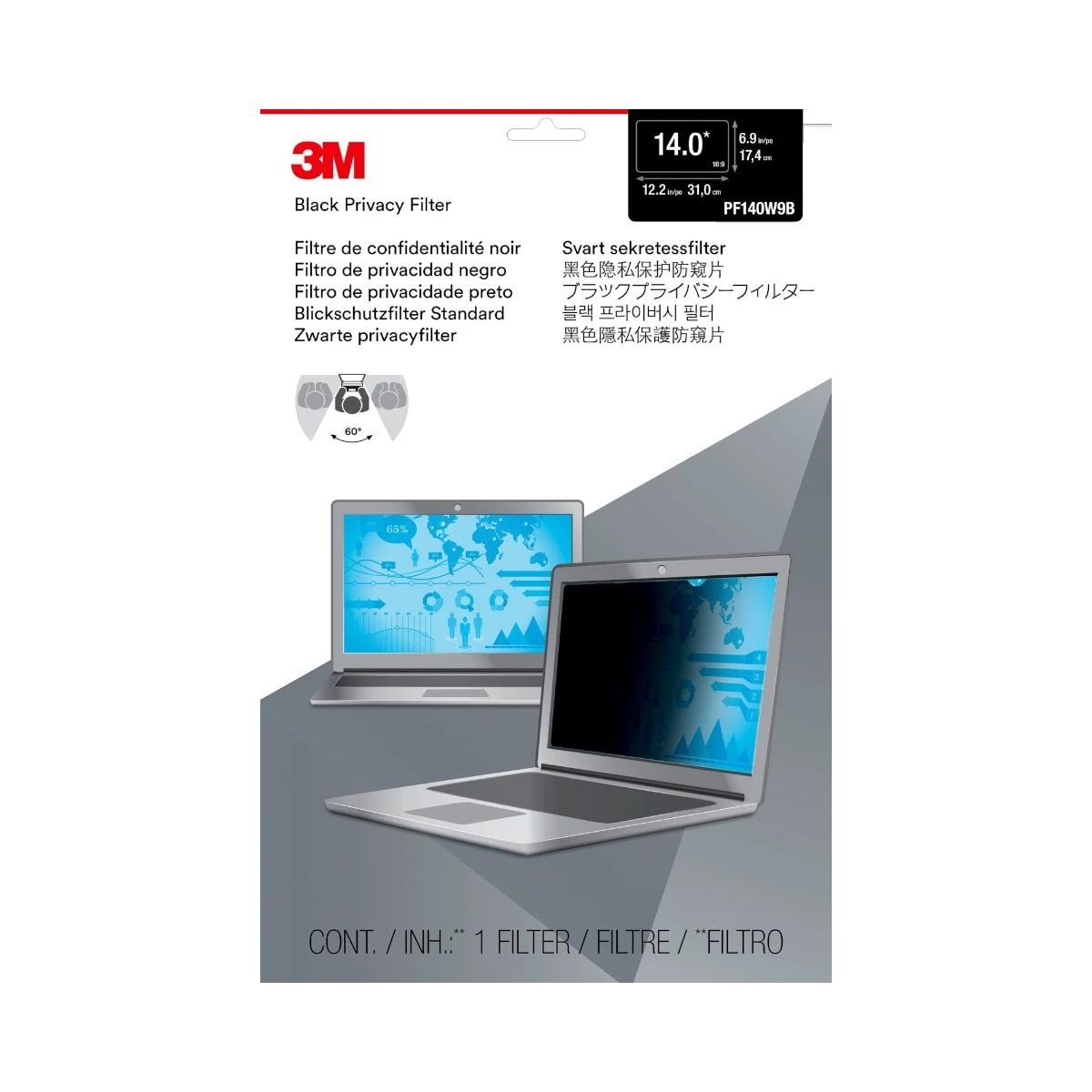 Privacy Filter for 14" Widescreen Laptop with COMPLY Attachment System