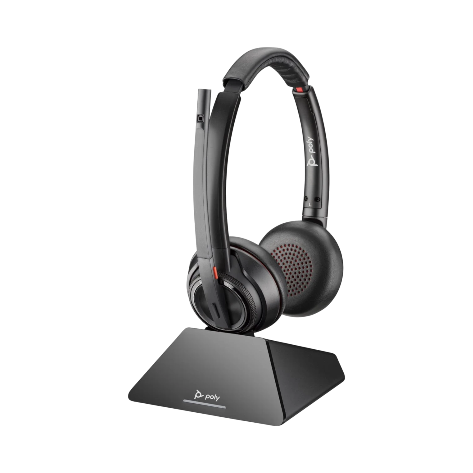 - Includes a desktop charging stand that keeps your workspace organized while charging the headset.