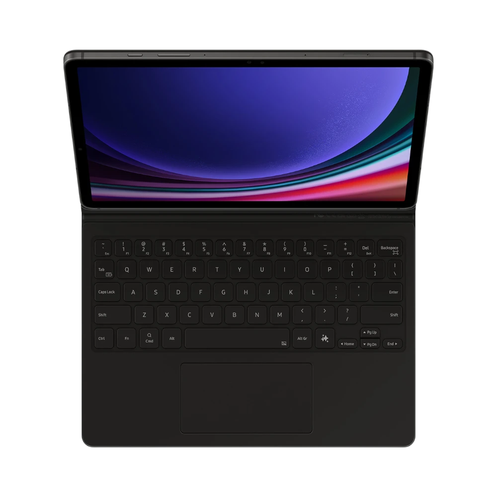 The Samsung EF-DX725UBEGUJ is a book cover keyboard designed to transform compatible Galaxy Tab S9, S9 FE, and S10 FE tablets into versatile productivity tools. It connects securely via built-in POGO pins, eliminating the need for Bluetooth pairing or separate charging, so you can start typing immediately. With 64 well-spaced keys, an integrated trackpad, and a palm rest, it offers a comfortable typing experience that supports both casual and professional use.