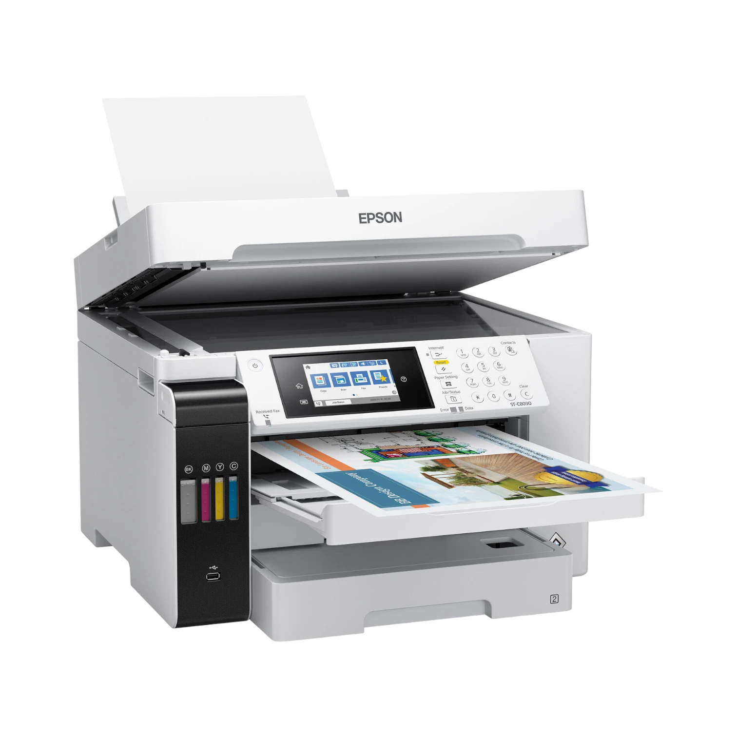 The Epson C11CH71203 is an all-in-one Supertank printer designed for workgroups and home offices that require high-volume printing with predictable running costs. It delivers up to 19,500 black pages or 14,800 color pages per ink refill, making it an economical choice for frequent printing. This printer supports borderless printing up to 13 x 19 inches, ideal for producing posters, spreadsheets, and marketing materials without needing external services.