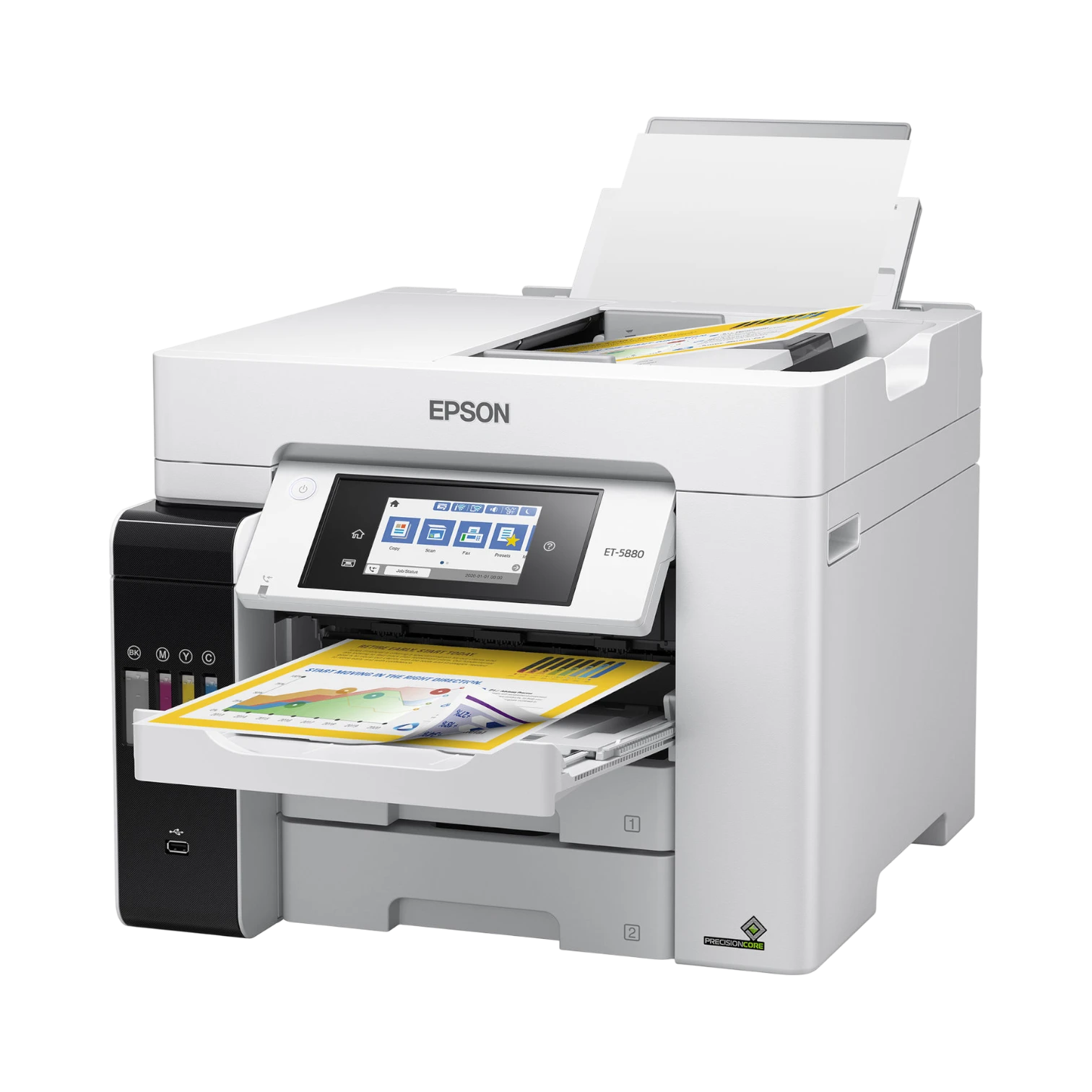 The EcoTank Pro ET-5800 fits well in home offices, remote work setups, and small business environments where reliable, high-volume printing is essential. Its large ink capacity and fast print speeds reduce downtime and supply costs, making it a strong choice for professionals who produce invoices, marketing materials, or everyday correspondence. The combination of scanning, copying, and faxing functions also supports diverse office tasks without needing multiple devices.