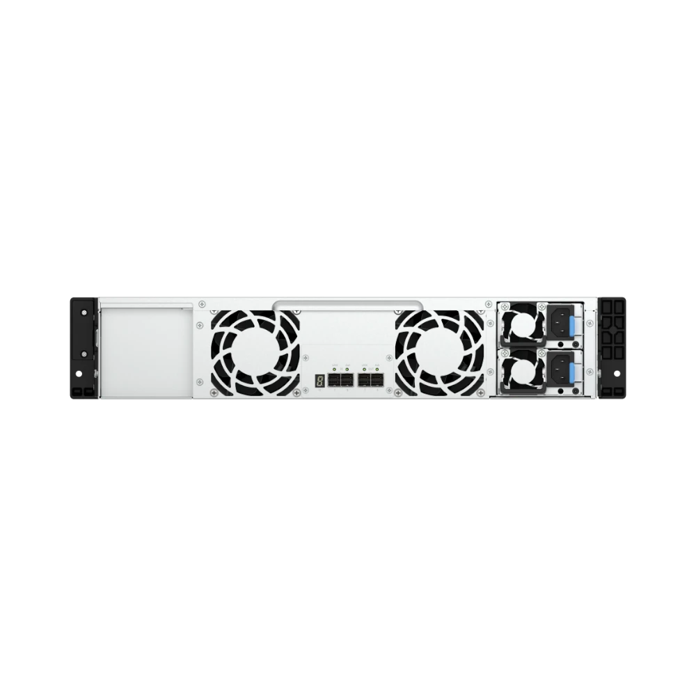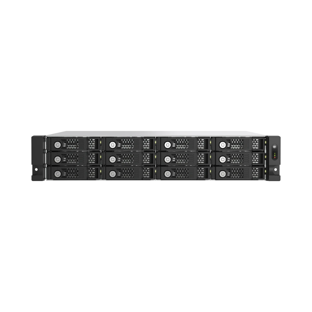 The QNAP TL-R1200PES-RP-US is a 12-bay JBOD enclosure designed to expand the storage capacity of compatible QNAP NAS systems without the need to rebuild RAID arrays or interrupt ongoing tasks. It connects via dual Mini-SAS HD SFF-8644 ports, enabling data transfer speeds up to 64 Gb/s, which supports fast movement of large files. This enclosure accommodates both 3.5-inch and 2.5-inch SATA hard drives or SSDs, allowing flexible configurations and easy scalability up to 2 PB by chaining multiple units.