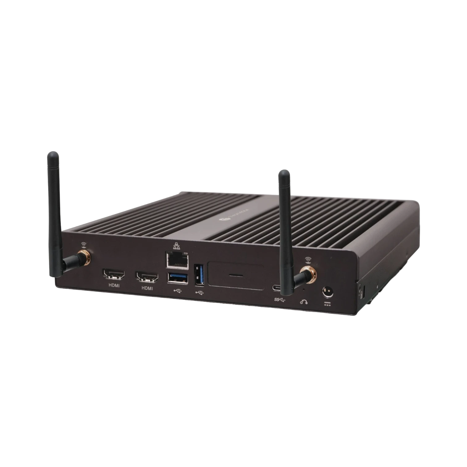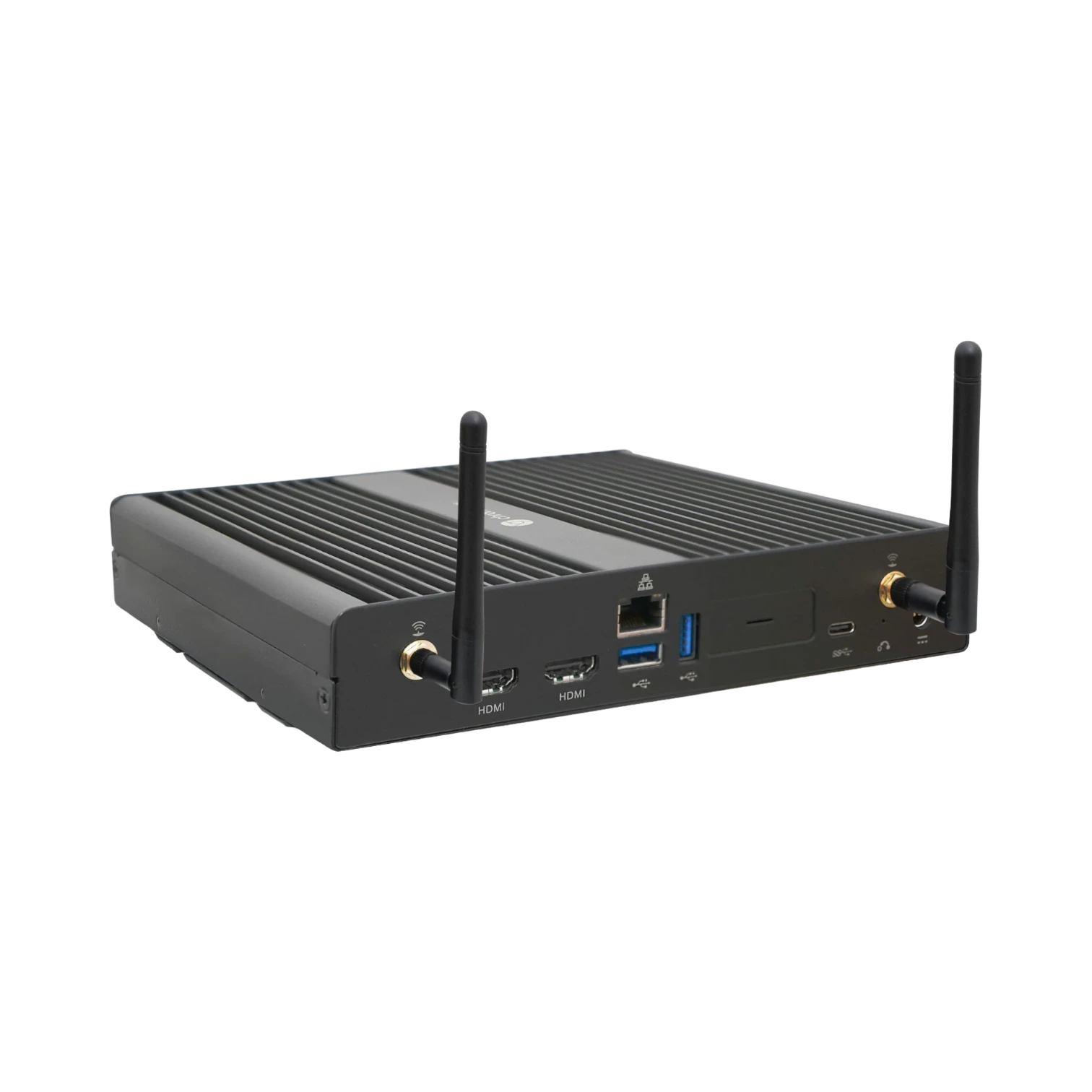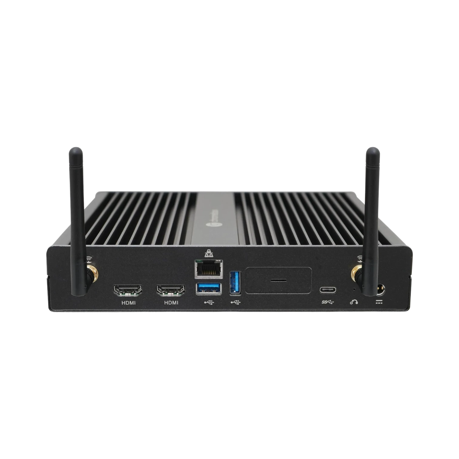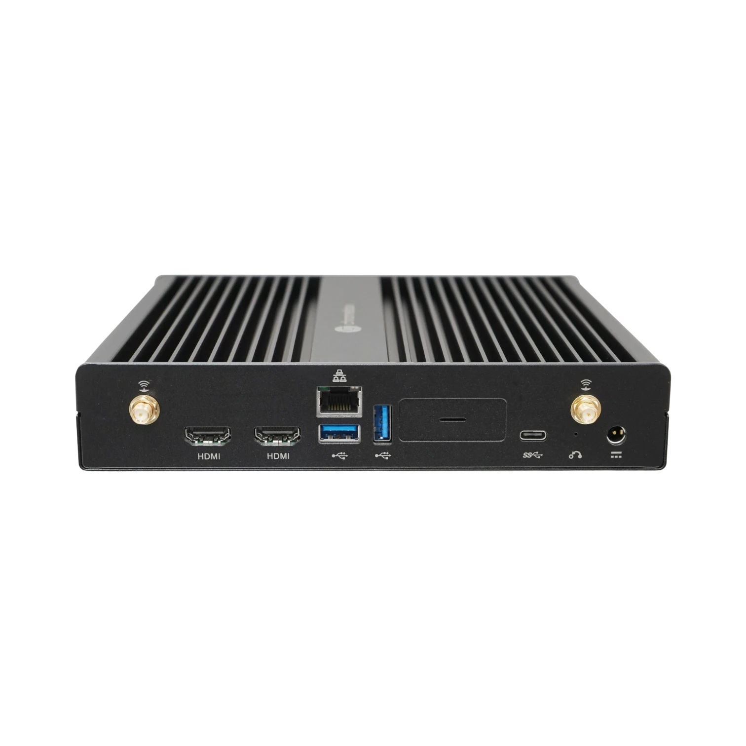 - Compact form factor that allows mounting behind monitors, enabling clean setups for menu boards, kiosks, or desktop replacements