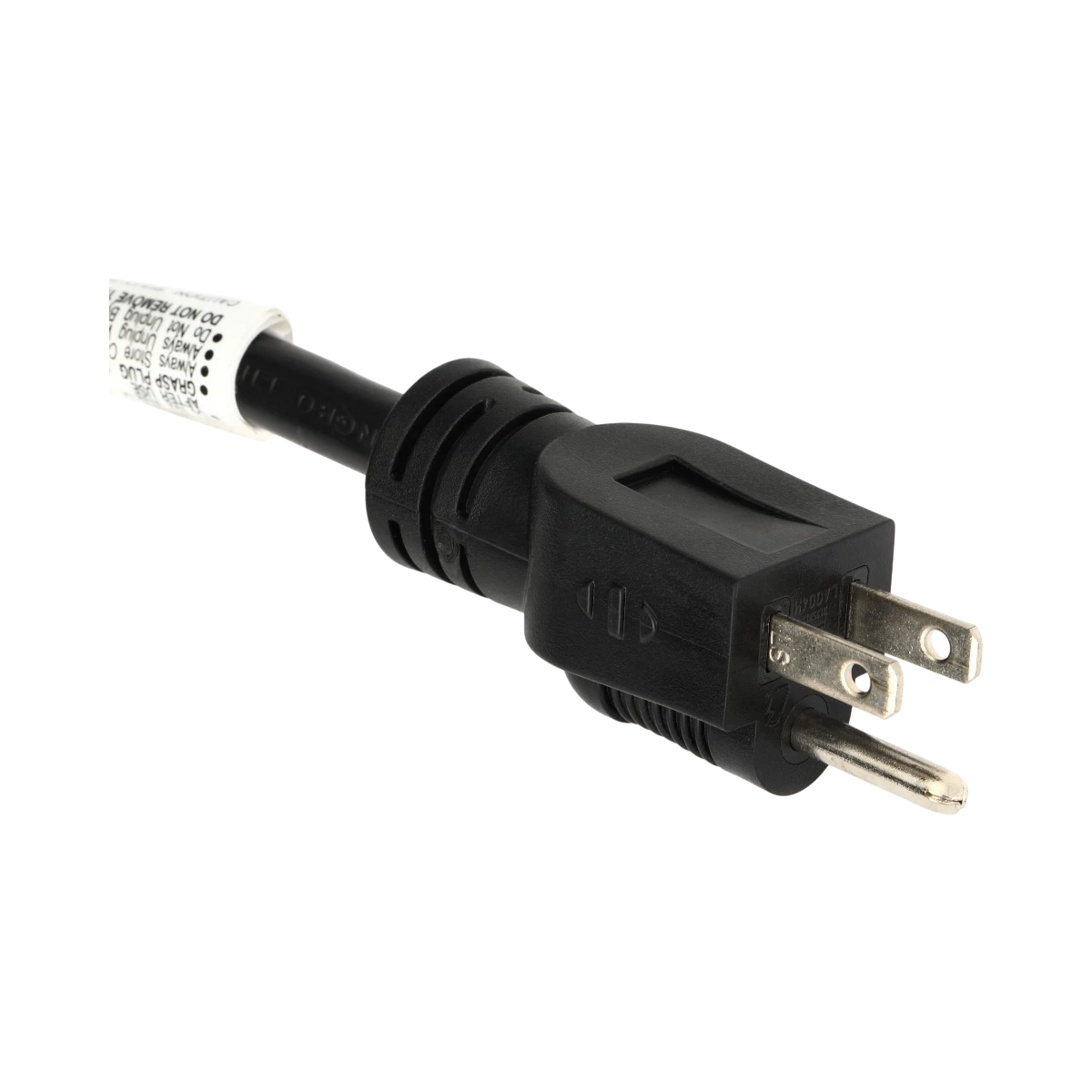 - Grounded three-prong male plug ensures compatibility with standard Edison sockets and enhances safety.