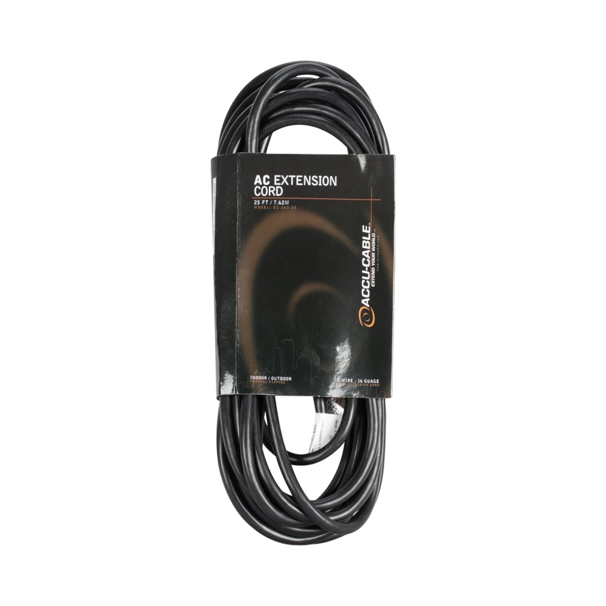 Accu-Cable 3-Wire Edison AC Extension Cord (16 AWG, Black, 25')