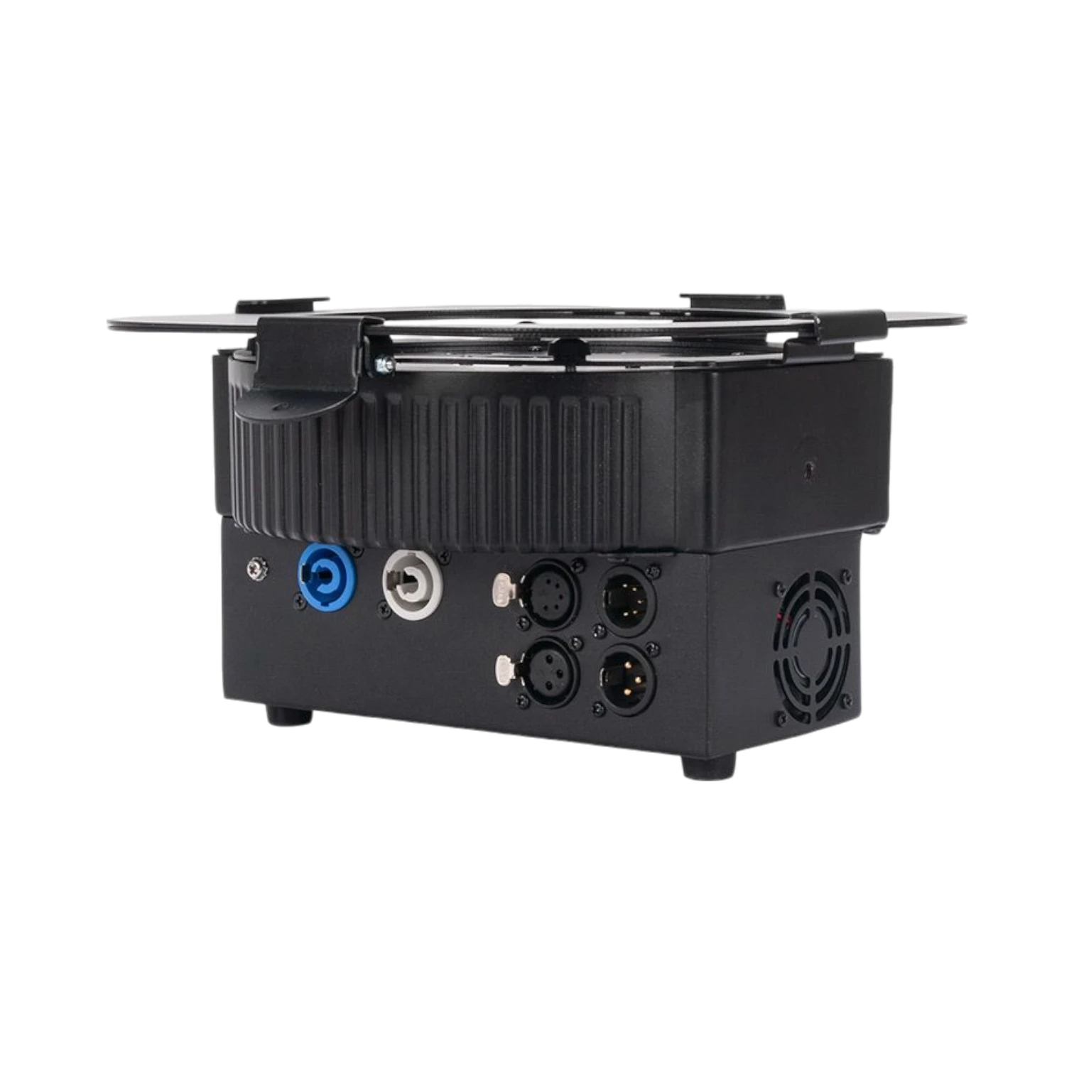- Side-mounted power and DMX connectors allow the fixture to sit flat or fit neatly in trusses without cable strain