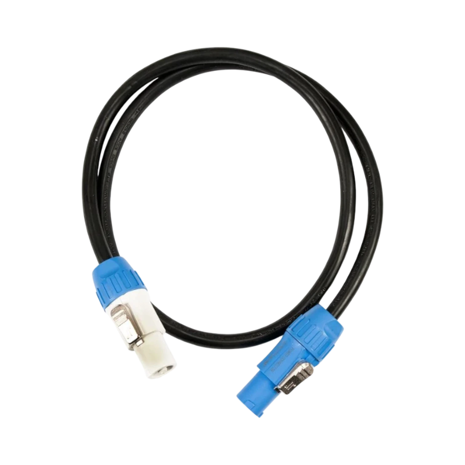 This cable is specifically designed to link Powerlock-compatible lighting and stage equipment, ensuring a secure power connection that supports professional AV setups. Its locking connector fits standard Powerlock ports, making it compatible with a wide range of devices used in theaters, concert venues, and event spaces.