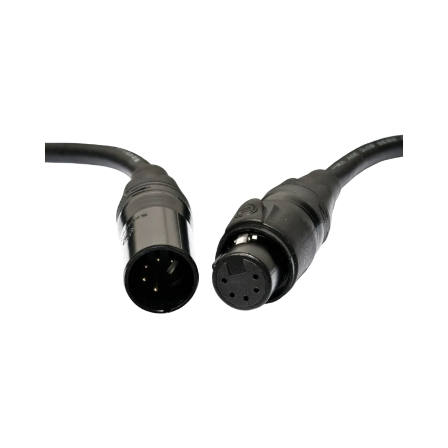 This cable is compatible with standard DMX lighting controllers and fixtures that use 5-pin XLR connections. The male-to-female configuration allows it to extend existing DMX lines or replace shorter cables without requiring adapters. Its robust connectors ensure a stable signal path even in demanding environments.