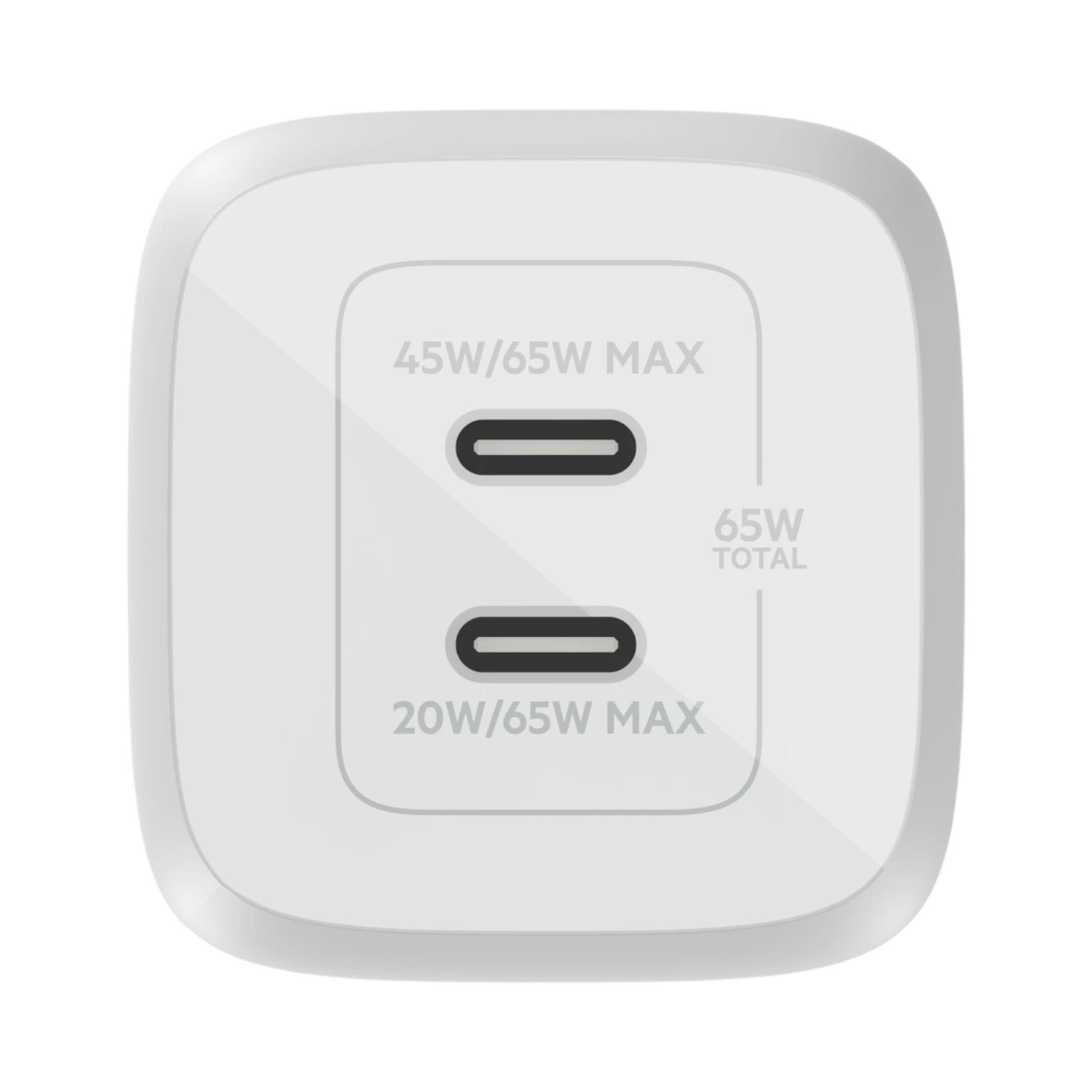 - Port power distribution: 45 W and 20 W when both ports are used