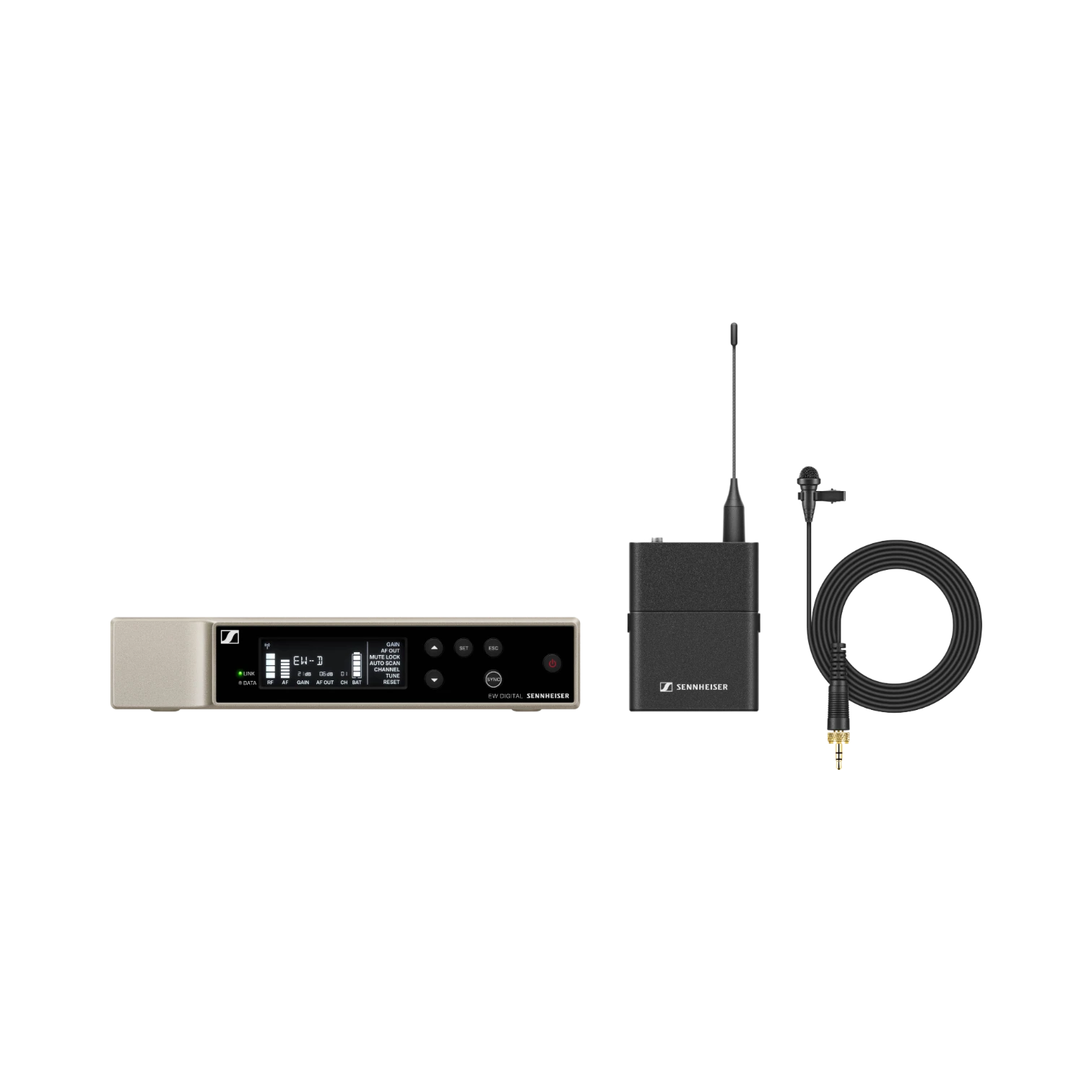The Sennheiser 508701 is a digital wireless lavalier microphone set designed for clear and reliable voice capture in speaking, teaching, and live performance settings. It features an omni-directional ME 2 clip-on microphone that picks up sound evenly from all directions, allowing natural movement without audio dropouts. With a 56 MHz tuning bandwidth supporting up to 90 channels and a dynamic range of 134 dB, this system ensures clean, distortion-free audio even during loud or energetic moments.