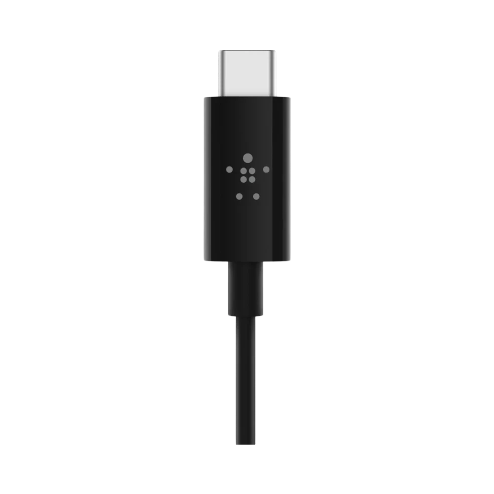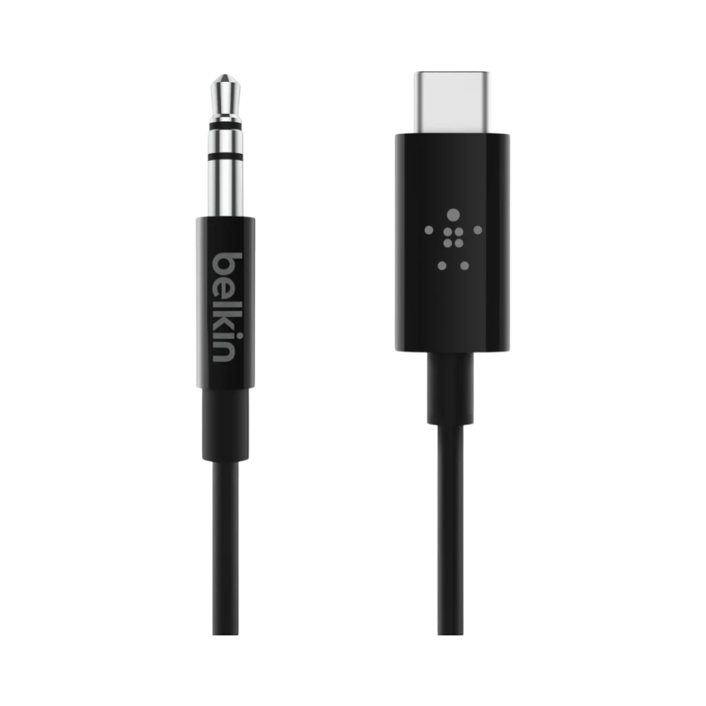 The Belkin F7U079BT03-BLK is a USB-C to 3.5mm audio cable designed to connect modern smartphones and tablets without headphone jacks to traditional audio devices like speakers, car stereos, and home receivers. Featuring a built-in digital to analog converter, it ensures clear and full sound by converting digital signals from your device into analog audio. With a length of three feet, this cable offers a practical balance between reach and portability, making it suitable for use in cars, at home, or on the go.