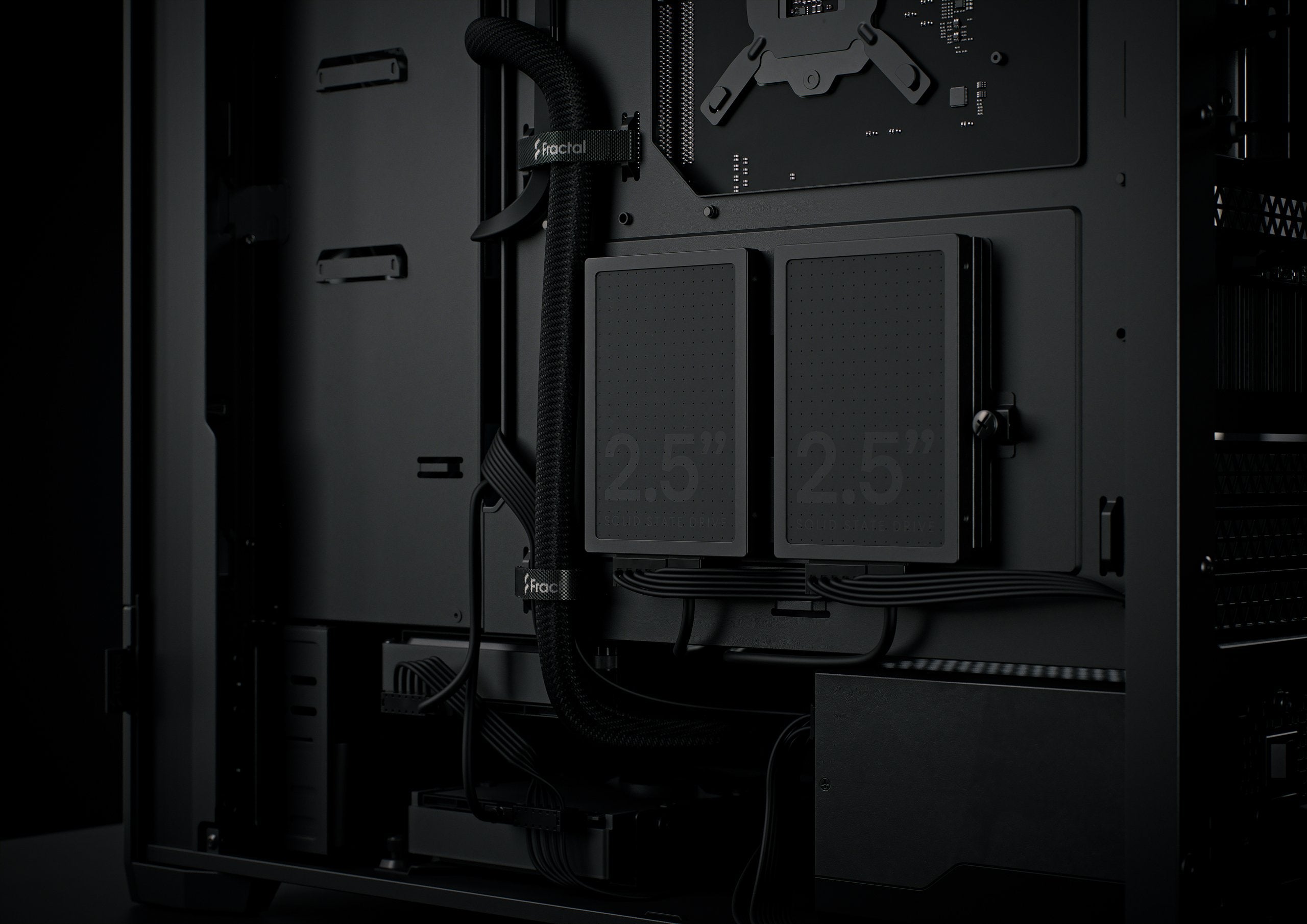 - Dual drive trays that accept either 3.5-inch hard drives or 2.5-inch solid-state drives, plus an additional bracket for two more 2.5-inch SSDs, offering versatile storage configurations.