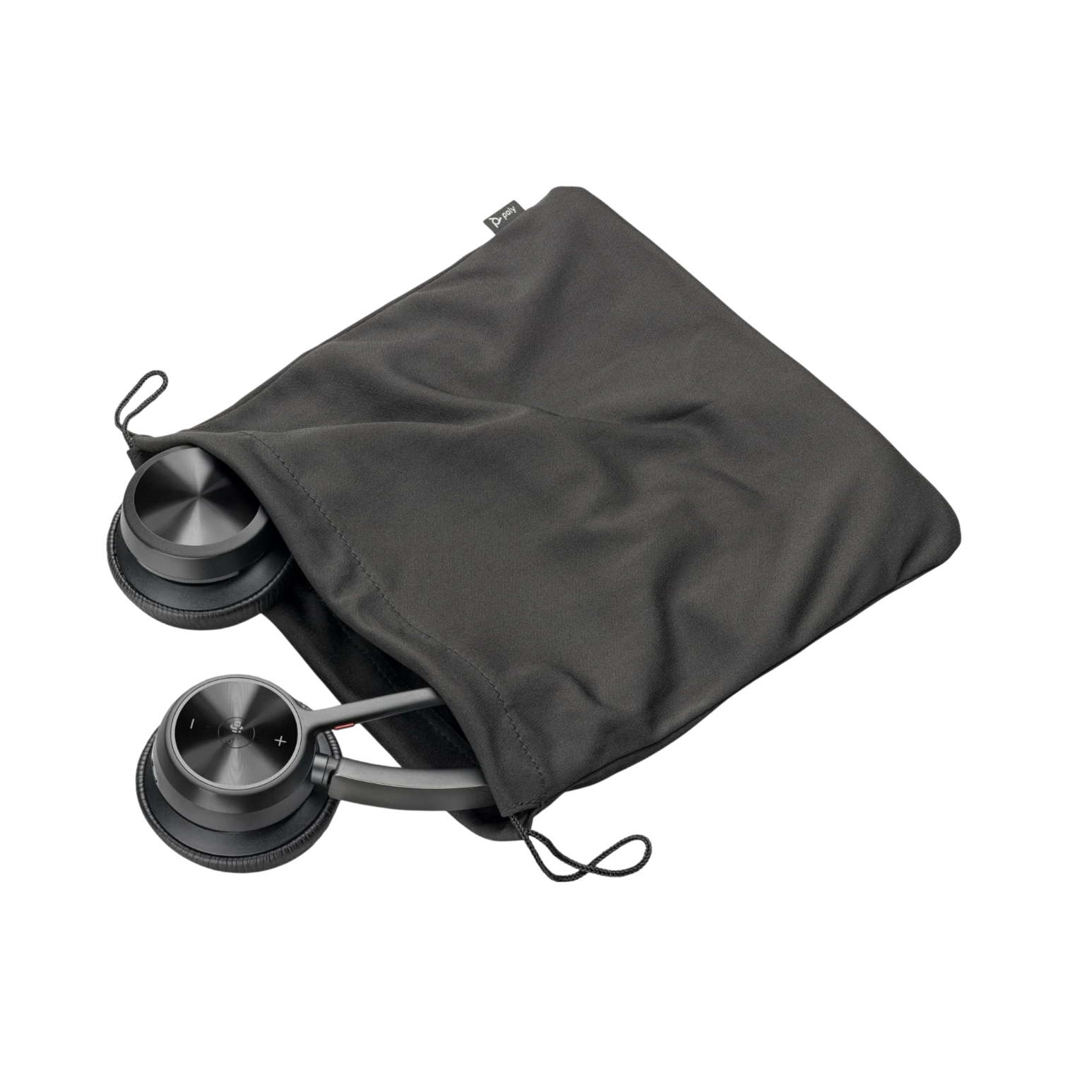 The Voyager 4320 features an on-ear design with soft memory foam cushions that provide comfort during long hours of use, reducing pressure and fatigue. Its fold-flat build and included travel pouch make it easy to pack and protect, whether commuting or traveling for work. The lightweight construction ensures it stays comfortable throughout back-to-back meetings or extended calls.