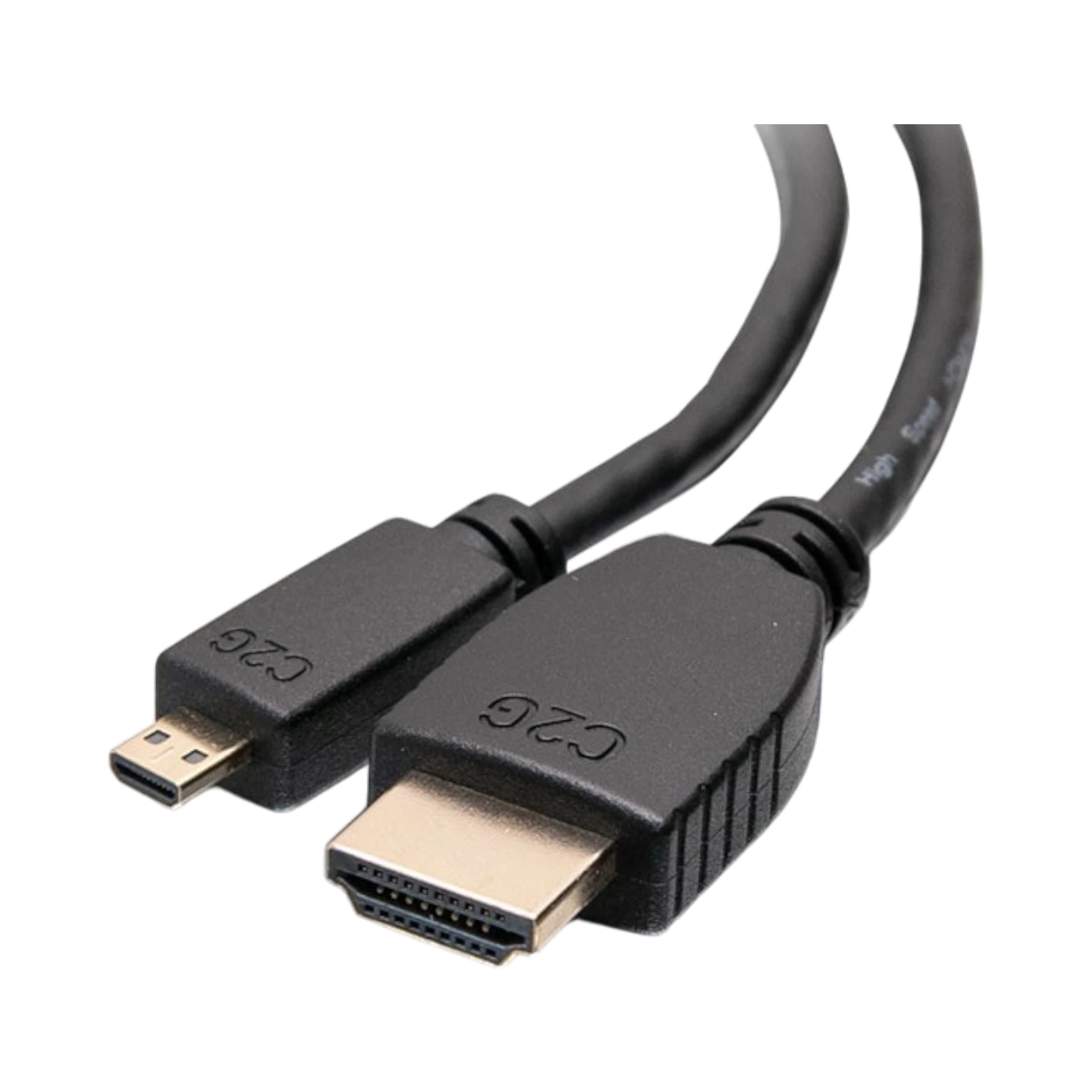 The C2G 50614 is a 3-foot HDMI to Micro HDMI cable designed to connect portable devices like phones, tablets, and cameras directly to TVs, projectors, or monitors with full-size HDMI ports. It supports 4K video at 60 Hz and high-quality audio formats, making it ideal for watching movies, reviewing footage, or mirroring displays in compact spaces without excess cable clutter.