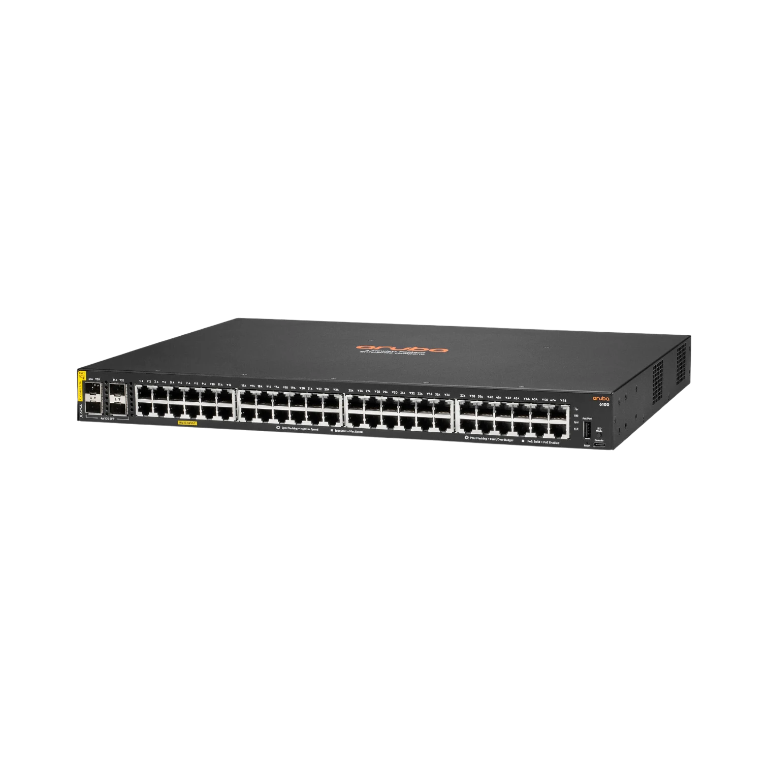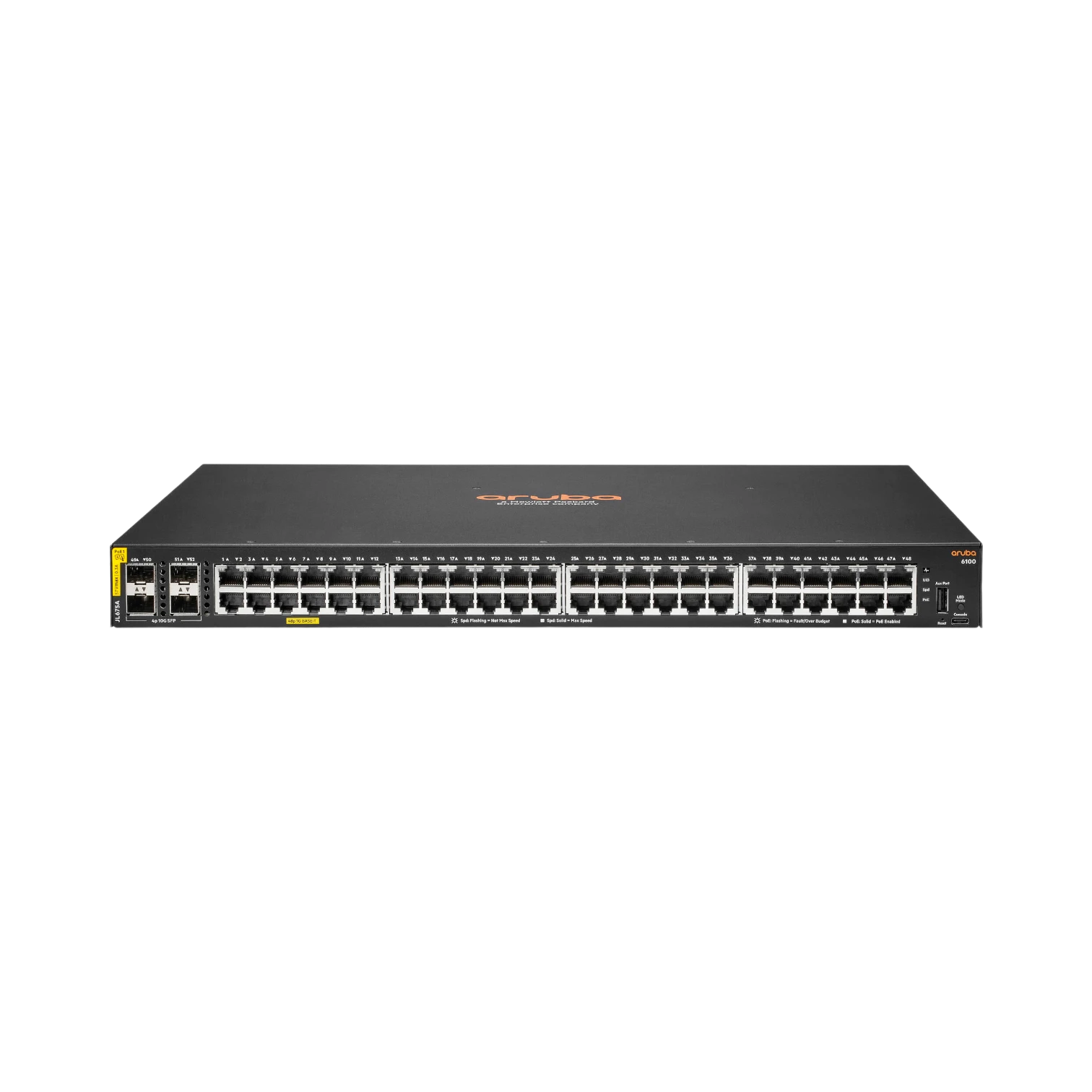 The Aruba JL675A#ABG is a 48-port Gigabit PoE+ managed network switch designed to expand and enhance network capacity in branch offices, mid-sized enterprises, and small to medium business environments. It features 48 Gigabit Ethernet ports with PoE+ support, delivering a total power budget of 370 watts to power devices like IP cameras, wireless access points, and VoIP phones directly through the network cable. With a switching capacity of 176 Gbps and a forwarding rate of 98.6 million packets per second, it handles heavy network traffic efficiently while providing four SFP+ uplink slots for 10G fiber connections to ensure high-speed uplinks and flexible network design.