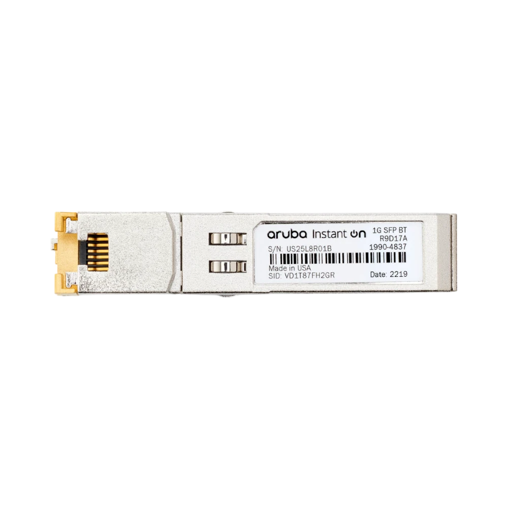 The Aruba R9D17A fits well in small to medium-sized offices, retail locations, and other professional settings where extending network reach is necessary without the complexity of fiber optics. It is a strong choice for IT administrators who need a reliable, easy-to-install transceiver to maintain gigabit speeds across existing Ethernet cabling. This module works well in setups where space is limited and quick deployment is important.