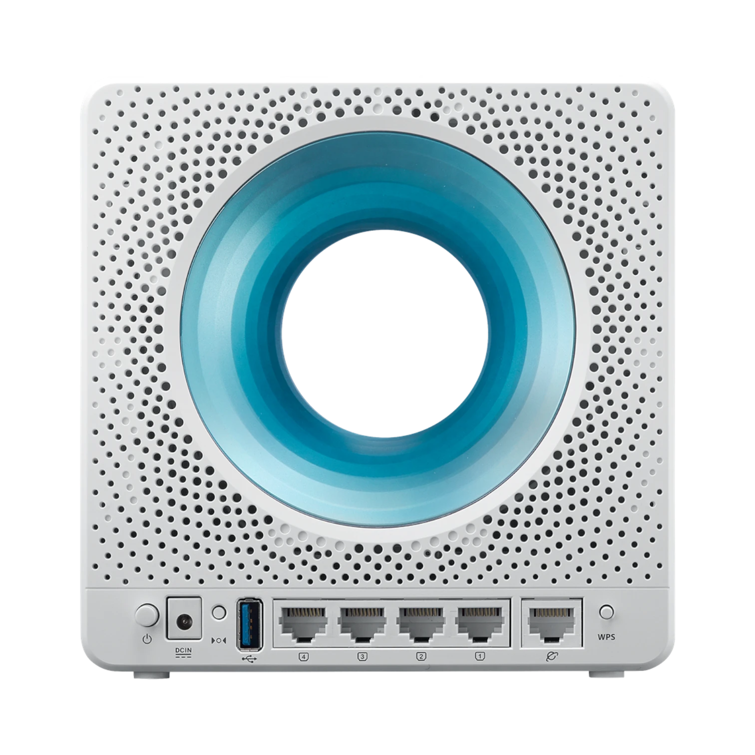 The ASUS BLUE CAVE is a dual-band wireless router designed to deliver fast and reliable internet connectivity throughout large homes. It supports combined speeds of up to 2600 megabits per second across the 2.4 GHz and 5 GHz bands, making it suitable for streaming, gaming, and downloading on multiple devices simultaneously. Its compact design hides four internal antennas, providing strong coverage without cluttering your space.