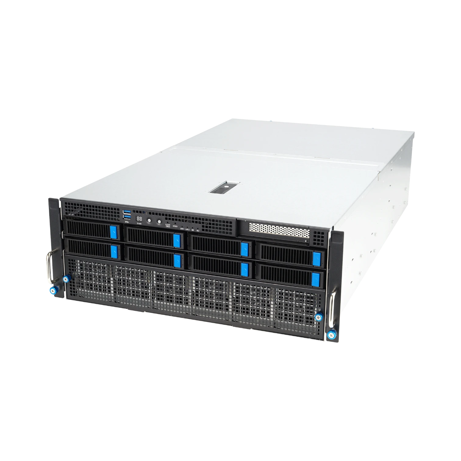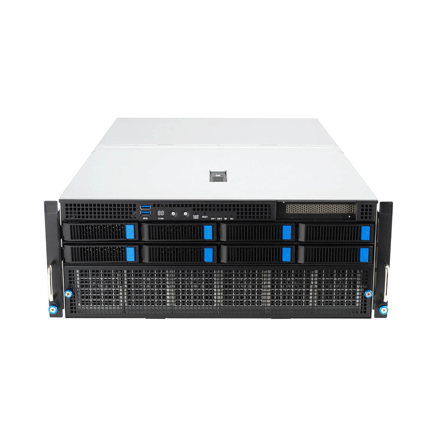 With eight PCIe 5.0 x16 slots, it accommodates double-width GPUs or accelerator cards, while eight front-accessible 3.5-inch hot-swap drive bays provide flexible storage options. The system includes dual 10 Gigabit Ethernet ports and an OCP 3.0 mezzanine slot for advanced networking needs. Its 2+2 redundant power supply design ensures reliable operation during critical tasks.