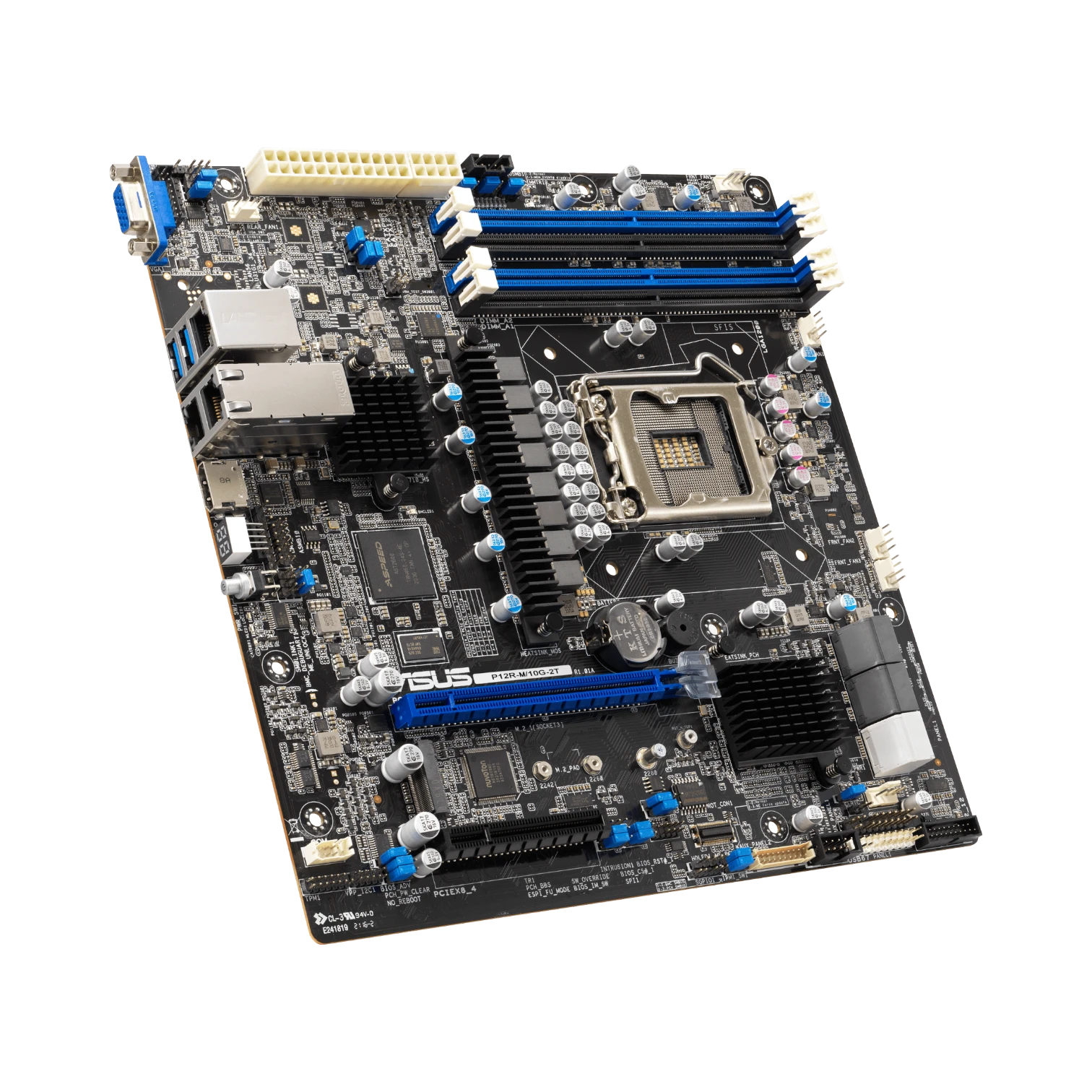 The ASUS P12R-M/10G-2T is a Micro ATX server motherboard built around the Intel C252 chipset and an LGA 1200 socket, designed to support Intel Xeon E-2300 and Pentium processors. It offers a compact yet capable platform for small business servers, branch office file hosts, and edge appliances, delivering reliable performance with up to 128 GB of DDR4 memory and advanced networking features. This motherboard balances expandability and security, making it suitable for environments that require fast data transfer and remote management.