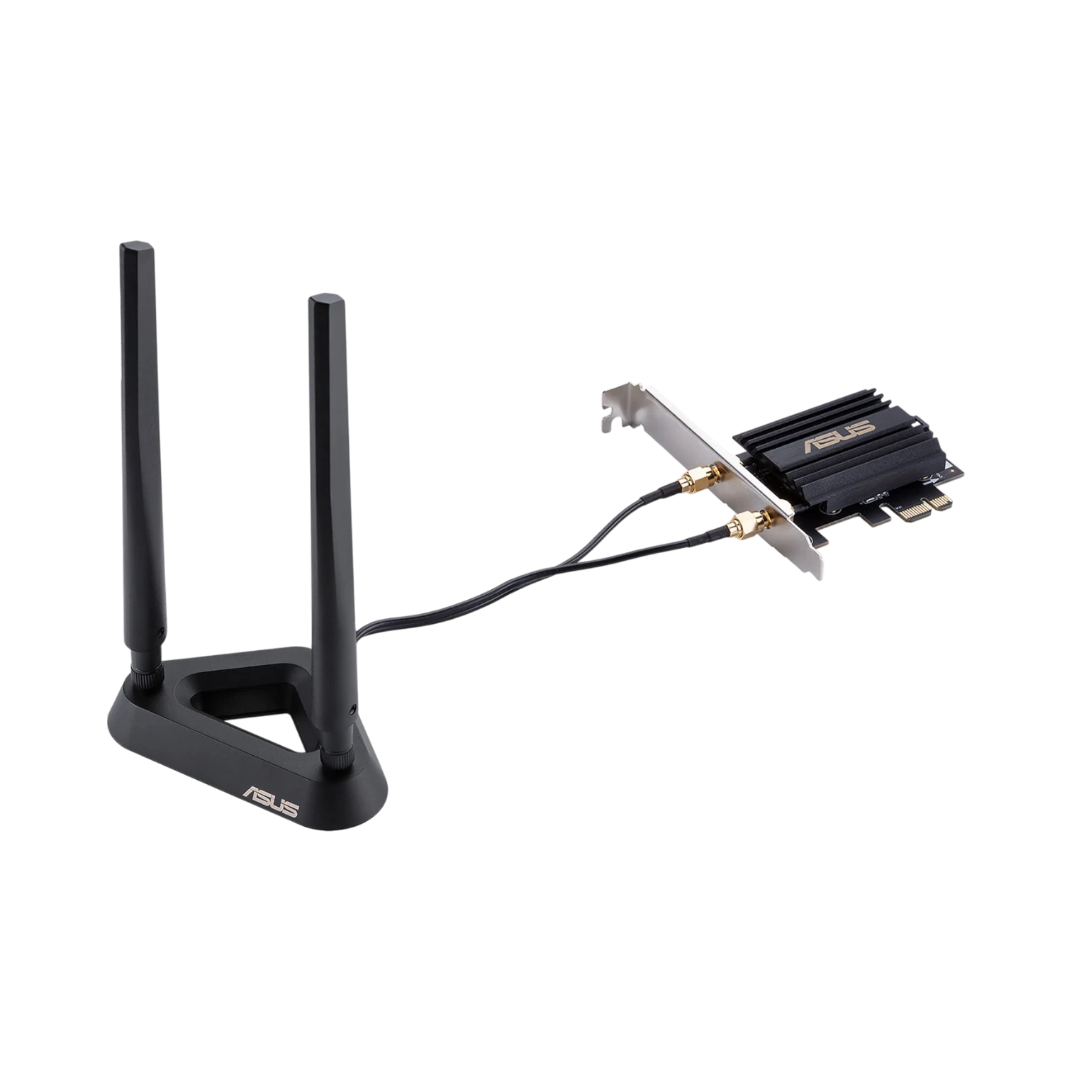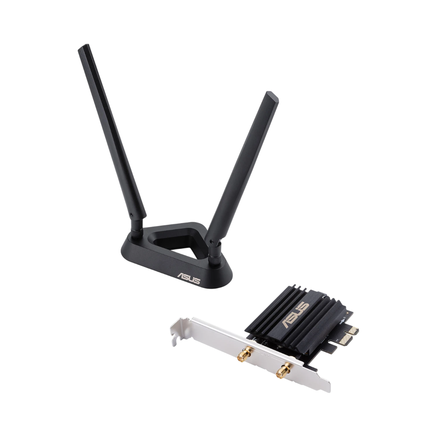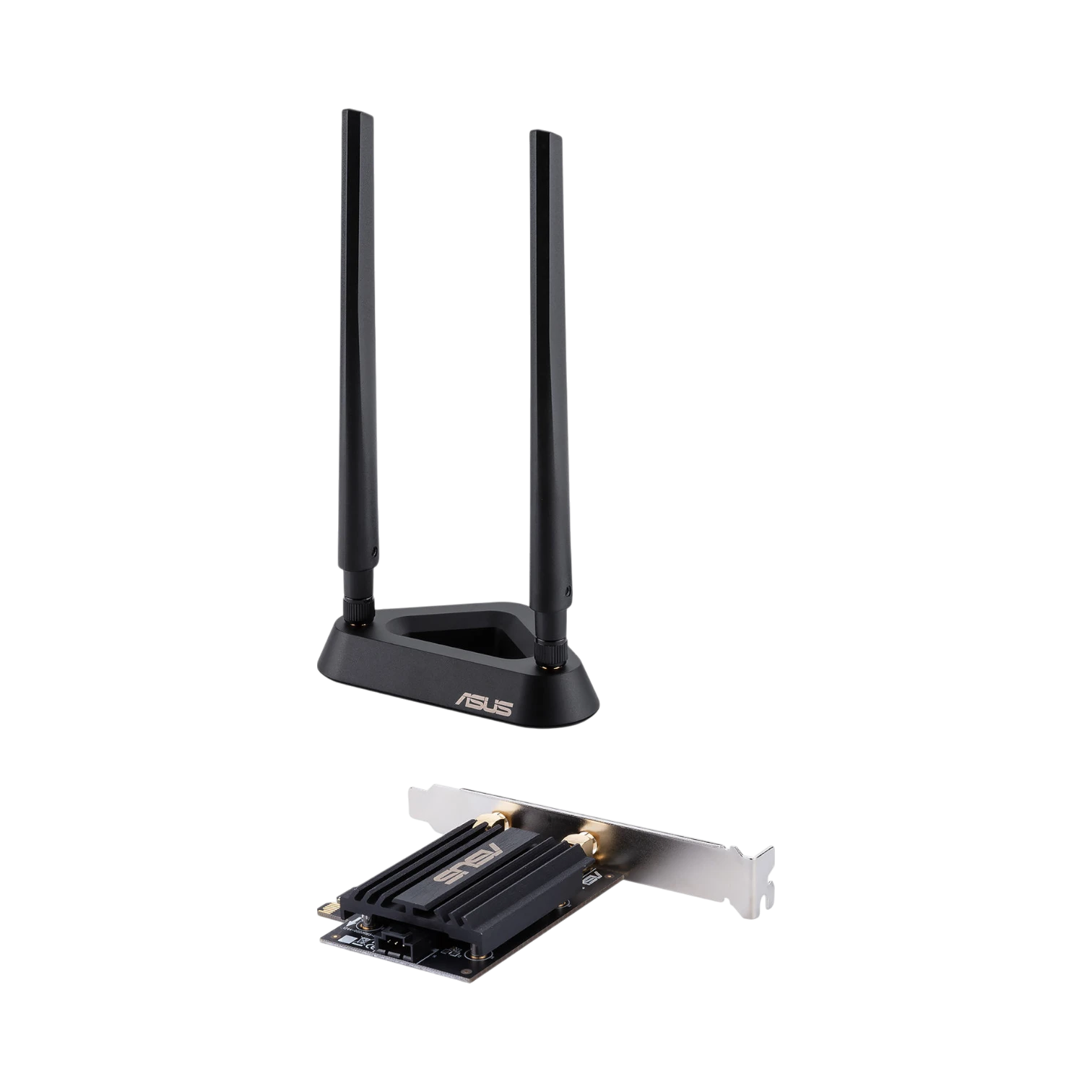 The ASUS PCE-AX58BT is a WiFi 6 PCIe adapter designed to upgrade desktop computers with faster wireless speeds and integrated Bluetooth 5.0 connectivity. It delivers combined throughput up to 3000 Mbps across 2.4 GHz and 5 GHz bands, enabling smooth 4K streaming, quick file backups, and lag-free online gaming. This adapter enhances network performance and security, making it a practical choice for modern home and office setups.