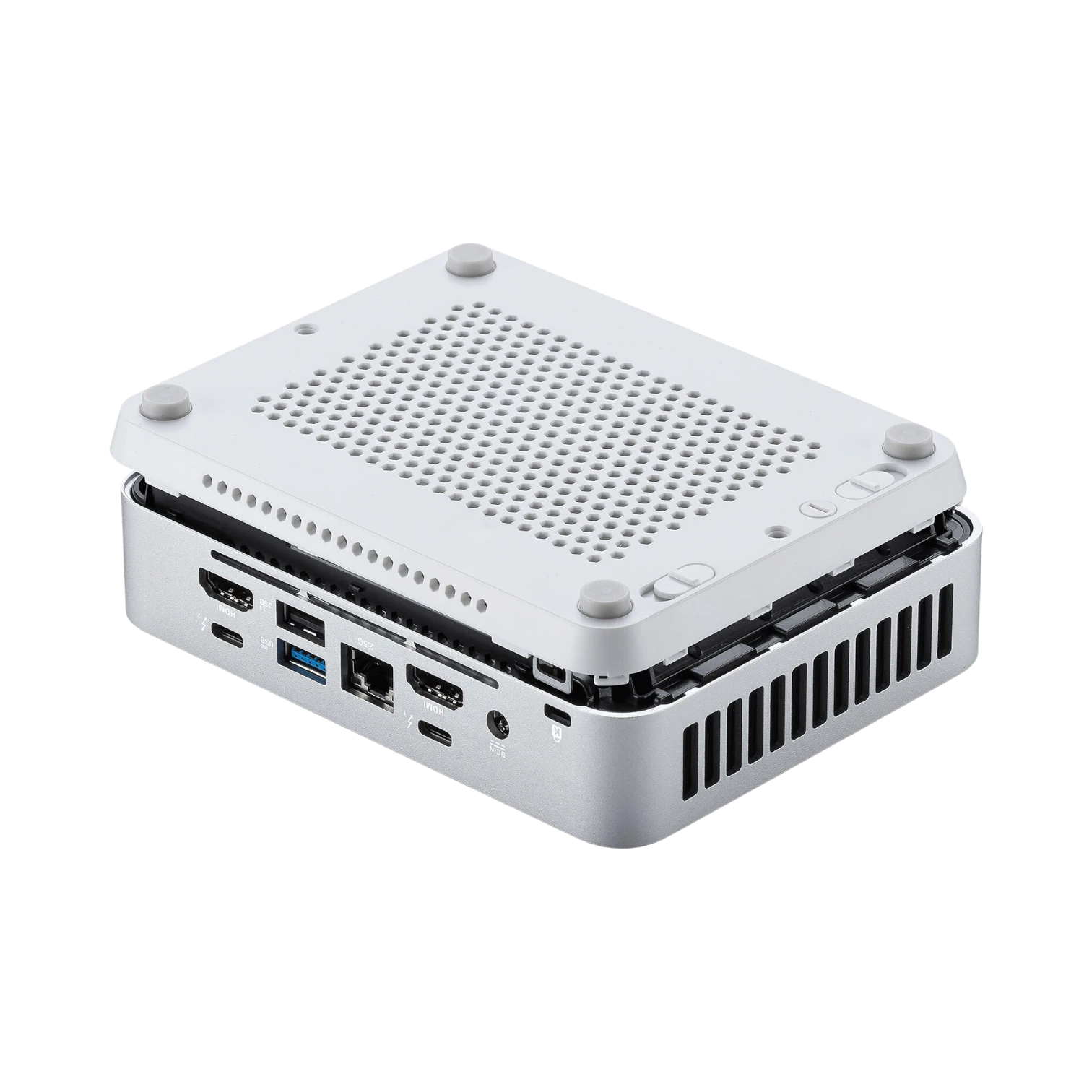 The barebone design allows you to tailor the system to your needs by adding memory, storage, and your preferred operating system. The tool-free chassis opens easily, making upgrades and maintenance straightforward. The included VESA mount lets you attach the mini PC behind a monitor, saving desk space and creating a clean setup. Whether you place it on a shelf, under a TV, or mount it for a clutter-free workspace, this kit adapts to your environment.