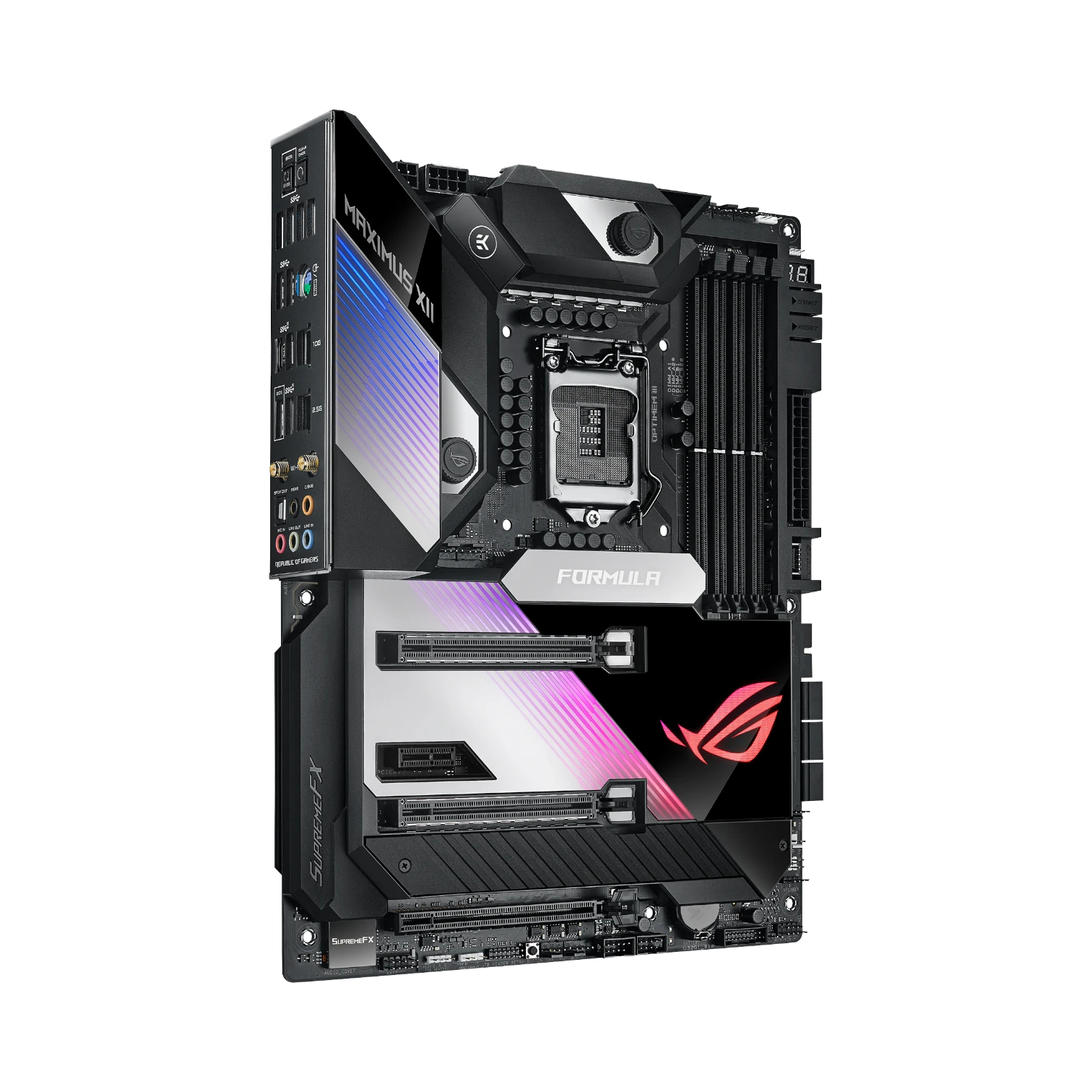 The ASUS ROG MAXIMUS XII FORMULA is an ATX motherboard designed to unlock the full potential of 10th Gen Intel Core processors using the Intel Z490 chipset and LGA 1200 socket. It supports up to 128 GB of DDR4 memory across four DIMM slots, making it well suited for gamers, overclockers, and content creators who demand high performance and multitasking capabilities. This motherboard offers extensive storage options, advanced networking, and robust cooling solutions to build a powerful and reliable system.