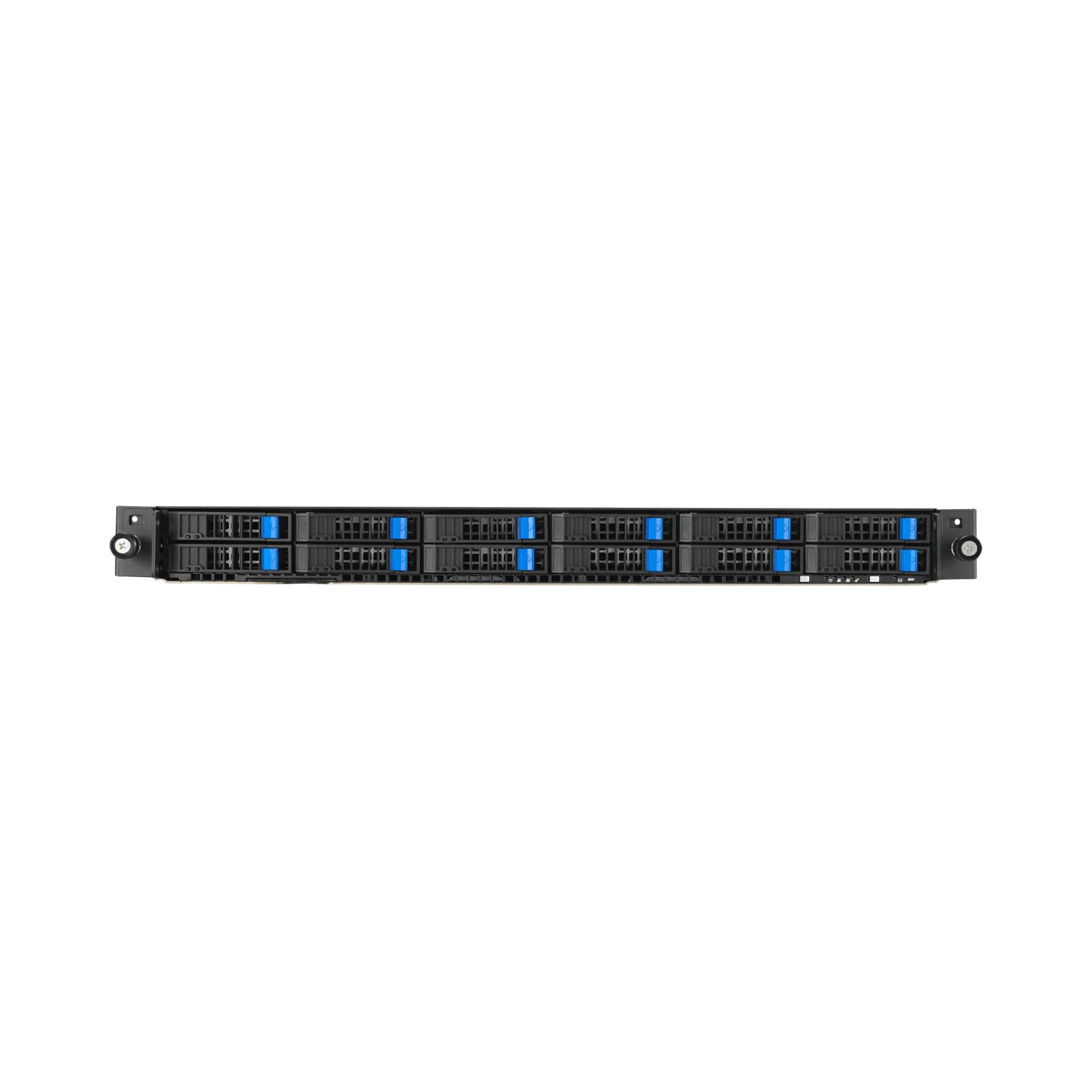 - Twelve hot swap NVMe bays at the front panel simplify drive replacement without disrupting rack operations.