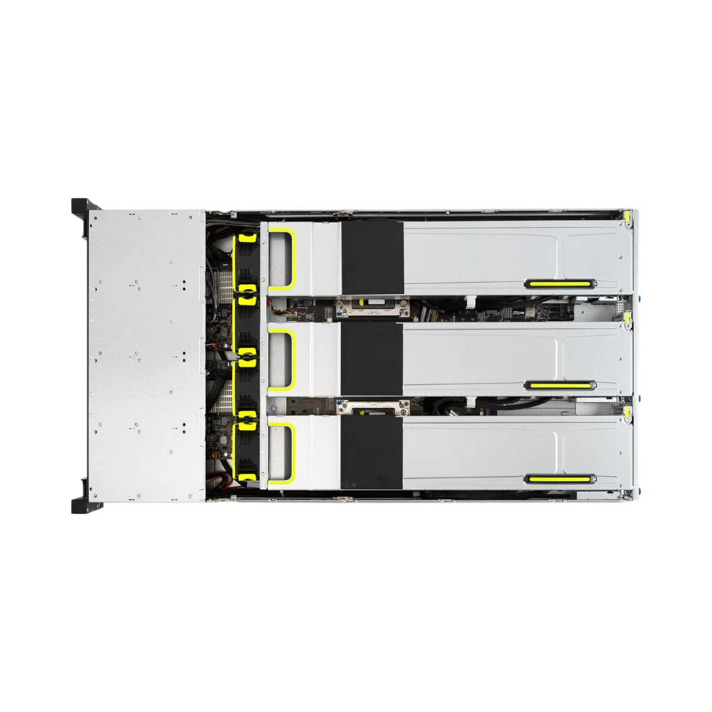 - Up to four dual-slot GPUs can be installed to accelerate AI inference, rendering, or data analytics tasks