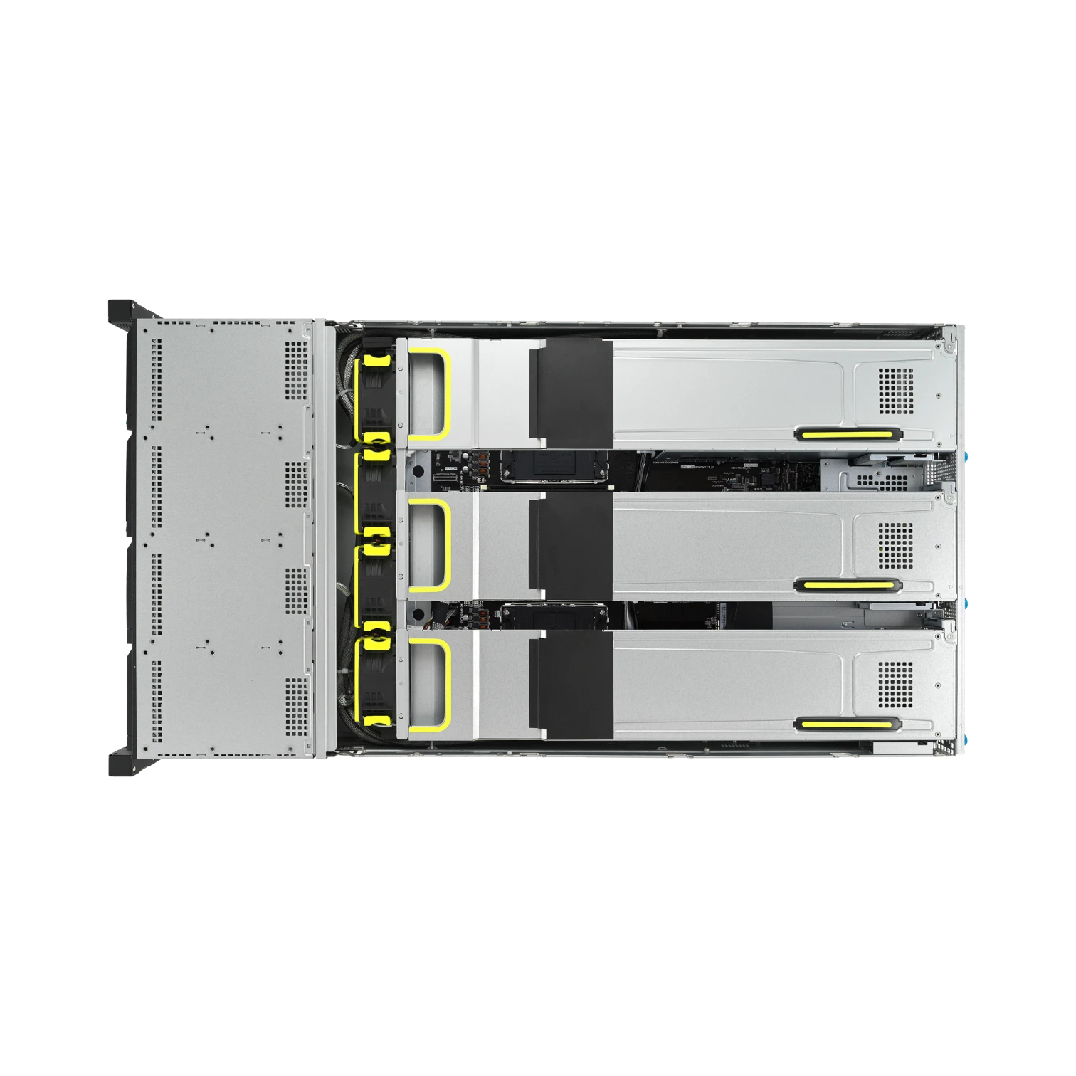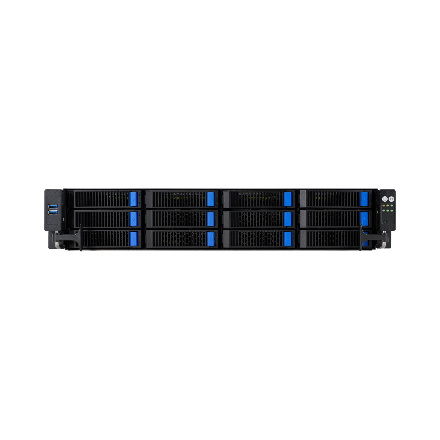 The ASUS RS720-E11-RS12U-16W10G is a 2U rackmount barebone server designed to deliver high compute density and extensive expansion capabilities for demanding enterprise workloads. It supports dual Intel Xeon Scalable processors via LGA-4677 sockets and accommodates up to 4TB of DDR5 memory across thirty-two DIMM slots, making it well suited for virtualization, large-scale databases, and in-memory analytics. The server’s front panel features twelve hot-swappable, tool-less drive bays, enabling easy maintenance without downtime.