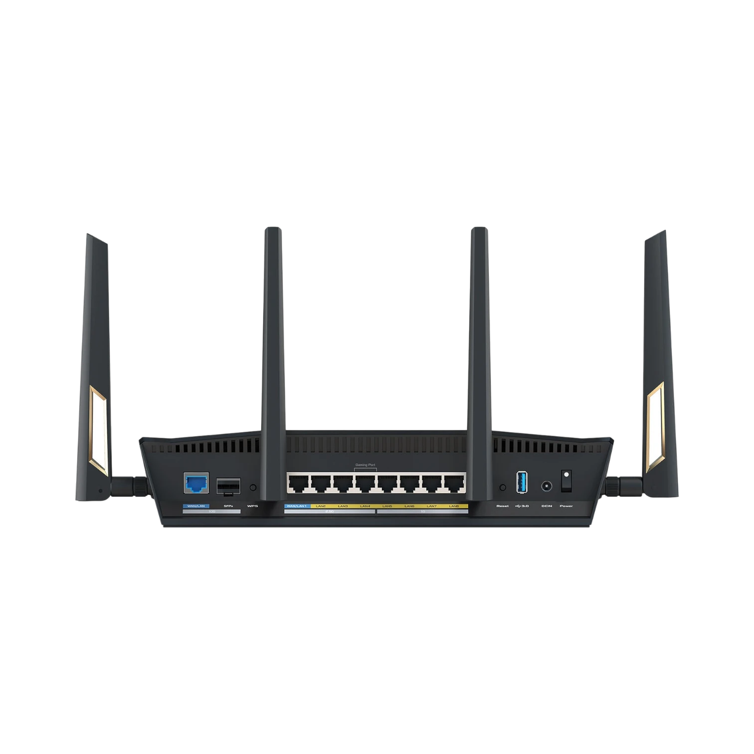 This router offers a comprehensive set of wired and wireless connections to fit a variety of network setups. The dual 10 Gigabit ports provide options for high-speed fiber or copper connections, while the multiple 2.5 G and 1 G Ethernet ports support fast local networking for multiple devices. The USB 3.2 Gen 1 port adds flexibility for sharing storage or connecting mobile internet devices. AiMesh compatibility ensures it can integrate smoothly with other ASUS routers to create a unified mesh network, ideal for larger homes or offices.