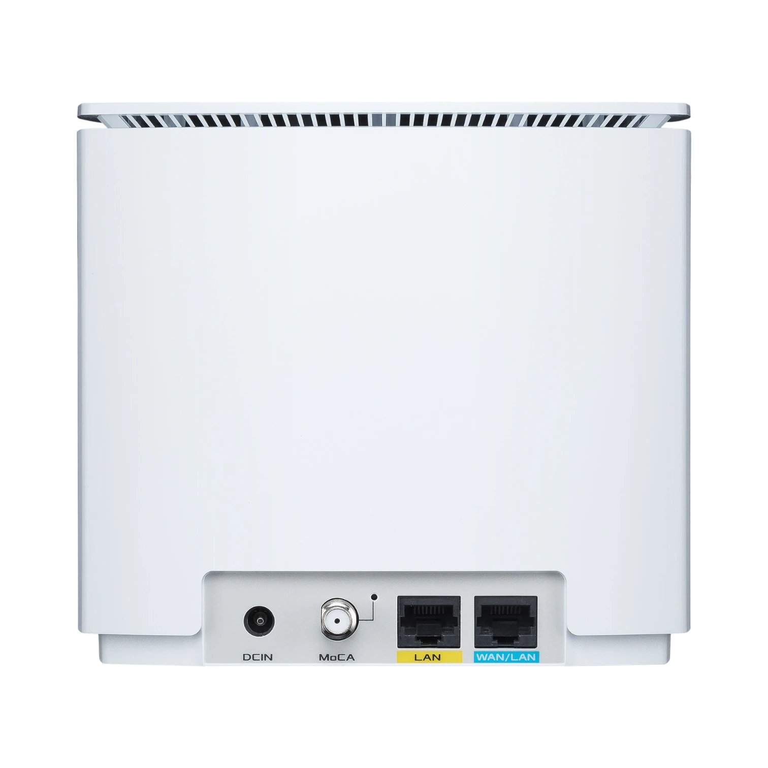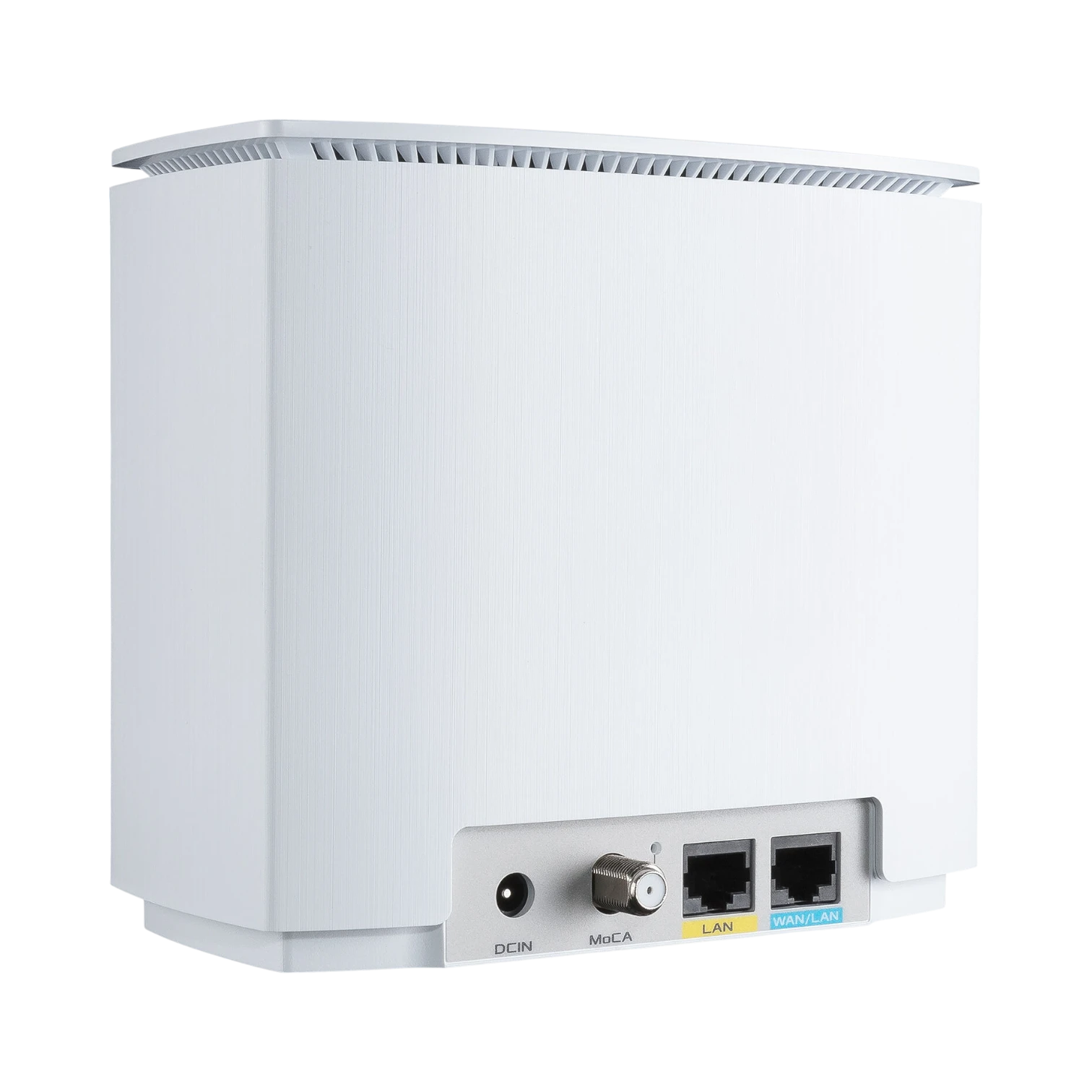 The ASUS XC5 (W-2-PK) is a ZenWiFi AX Hybrid mesh Wi-Fi system designed to provide fast and reliable internet coverage across medium to large homes. It combines Wi-Fi 6 technology with MoCA 2.5 support, allowing you to use existing coaxial cables as a wired backhaul to reduce wireless interference and maintain stable connections. With combined speeds up to 2976 Mb/s and coverage reaching 3500 square feet, this two-piece system supports multiple devices streaming, gaming, or working simultaneously without compromising performance.