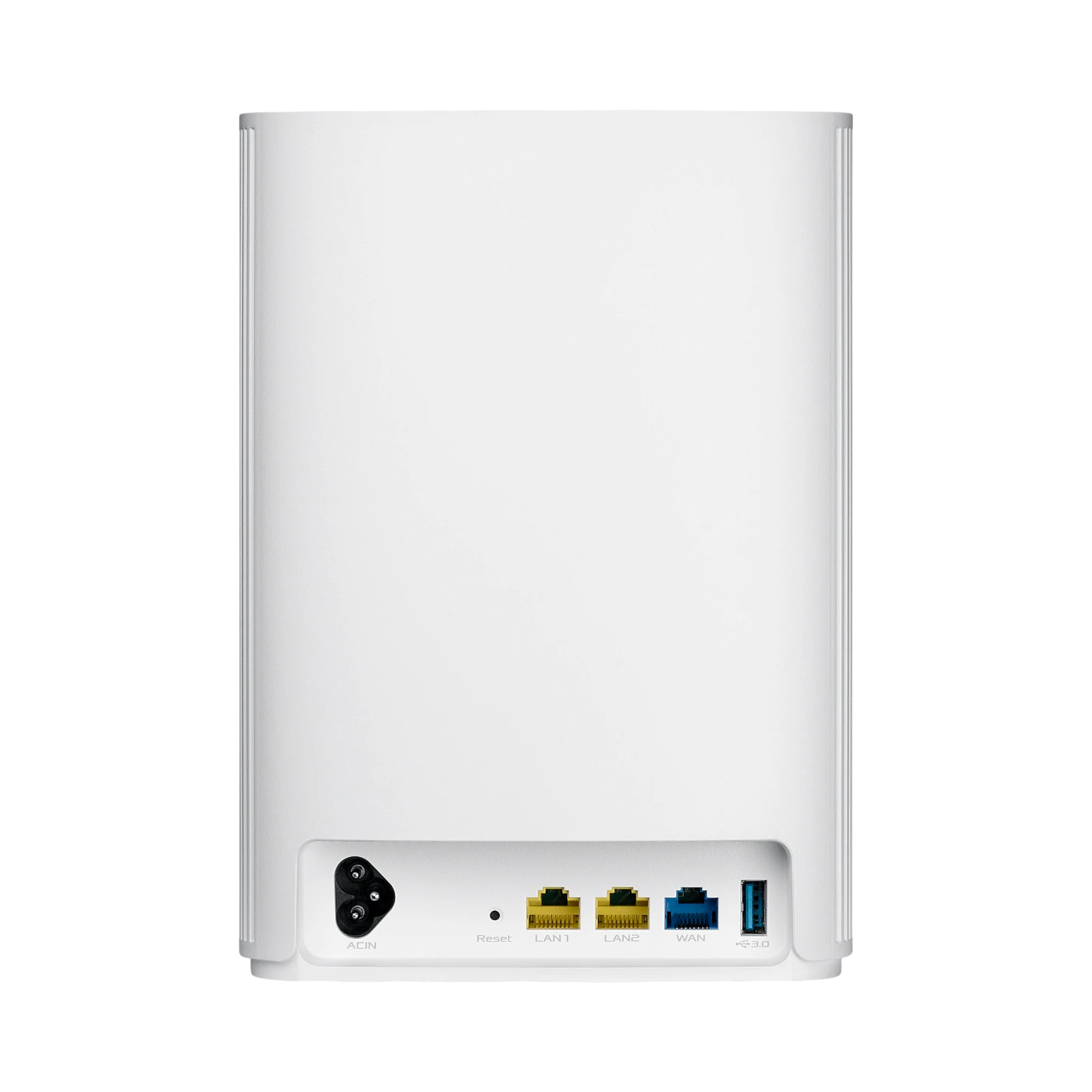 Each unit features four internal antennas for broad signal distribution, two Gigabit Ethernet ports for wired connections, and a USB-A 3.2 Gen 1 port for sharing files or connecting external storage. The ASUS Router app simplifies network management with advanced parental controls and lifetime security through AiProtection Pro, helping you maintain a safe and efficient home network.