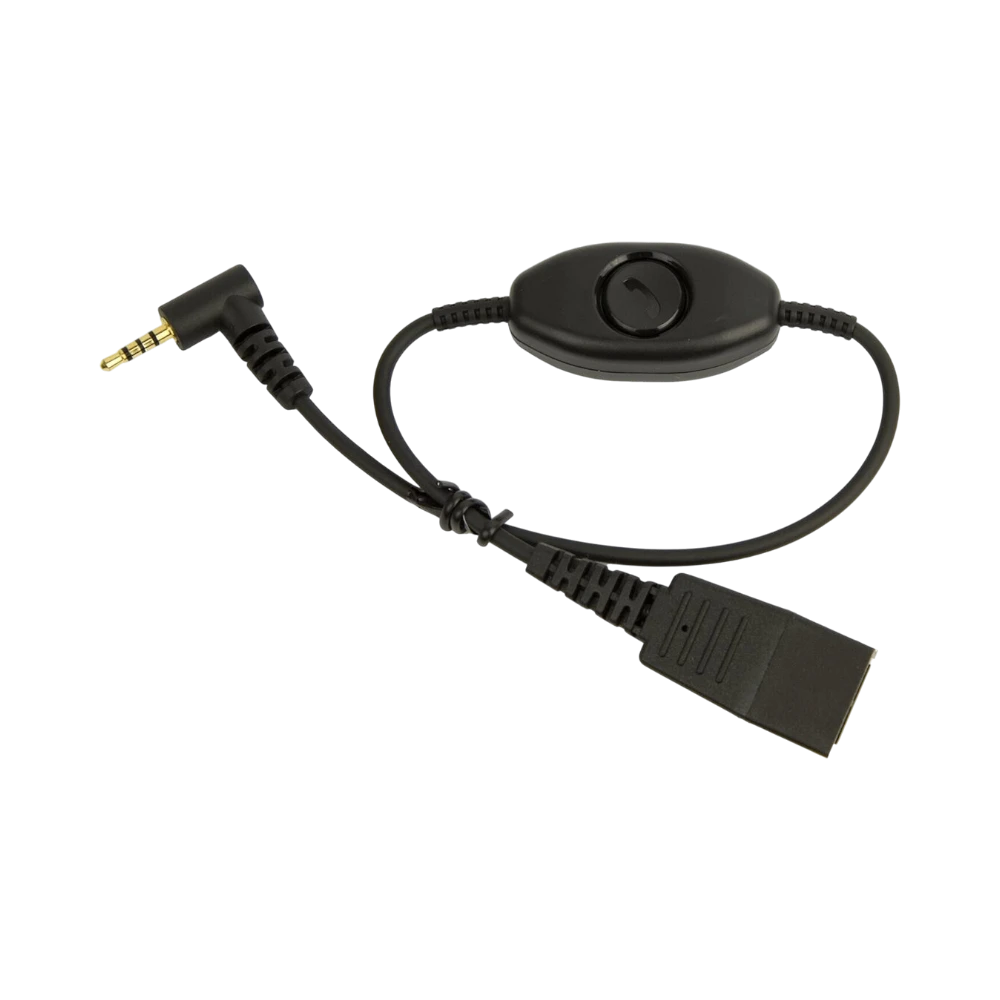 The Jabra 8800-00-79 is an adapter cable designed to connect a Jabra Quick Disconnect headset to phones equipped with a 2.5 mm audio jack, while adding a push-to-talk button for instant call control. This cable streamlines communication by allowing users to answer or end calls without reaching for the phone, making it especially useful in environments where quick responses are essential, such as call centers and security dispatch.
