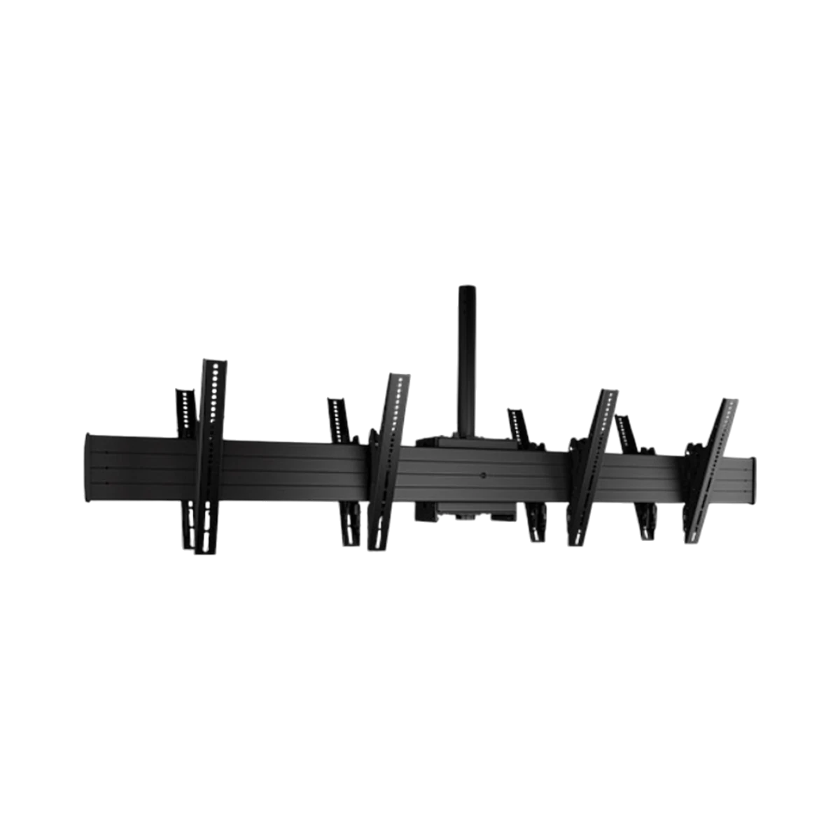 The mount is designed for quick and straightforward installation on site. Its tool-free engagement system secures the rails without the need for additional tools, making setup and maintenance efficient. The single horizontal extrusion ensures both displays remain perfectly aligned, simplifying the installation process. Since the ceiling plate and extension column are sold separately, you can select the exact drop length and mounting style that best fits your environment.