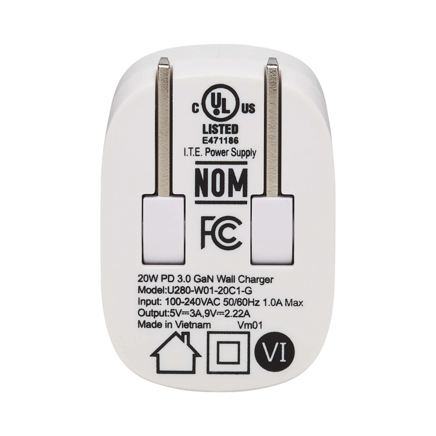 The Tripp Lite U280-W01-20C1-G is a compact 20 watt USB-C wall charger designed to provide efficient and reliable power for phones, tablets, and many lightweight laptops. It supports USB-C Power Delivery 3.0, delivering up to 20 watts to speed up charging times while maintaining a small footprint that fits easily in bags or on crowded outlet strips. Its advanced gallium nitride (GaN) technology enhances efficiency and reduces heat, making it a practical choice for daily use and travel.