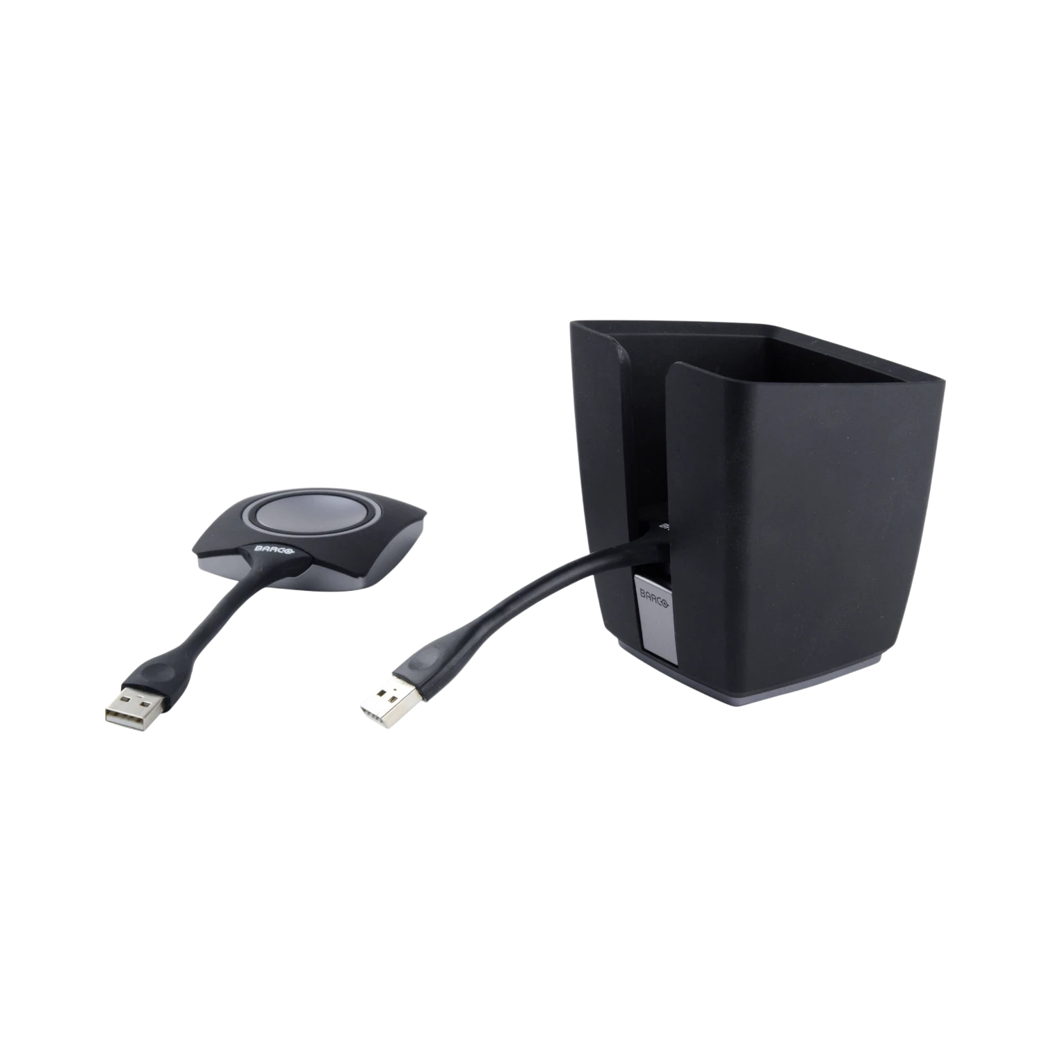- Securely holds up to four ClickShare buttons in individual slots that prevent scratching and allow clear visibility of pairing indicators