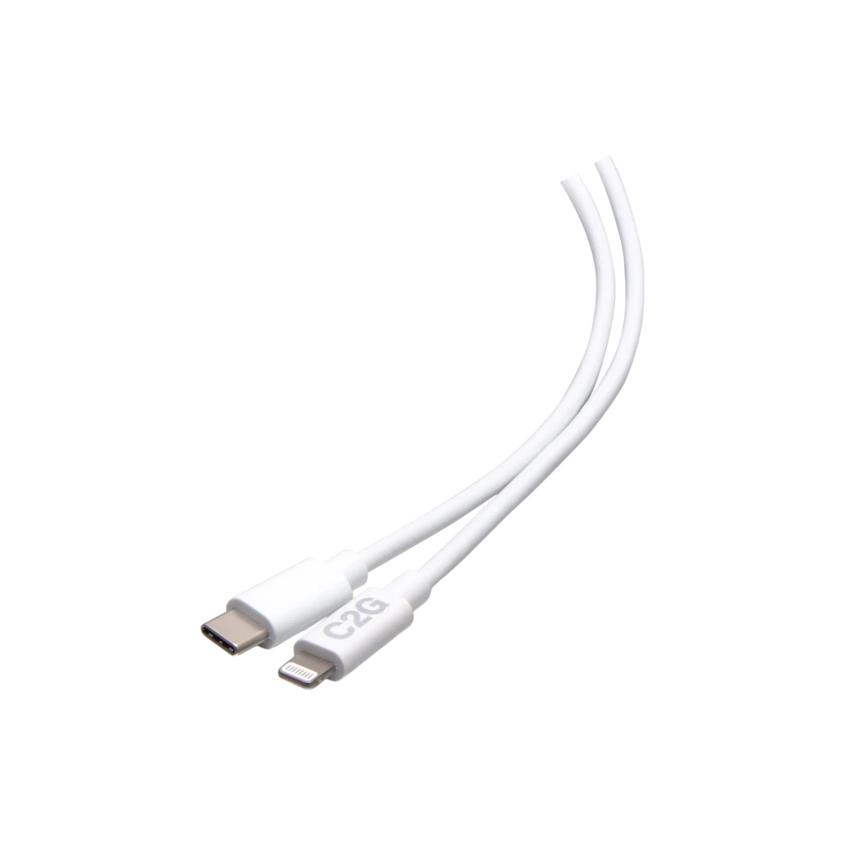 The C2G C2G54559 is a six foot USB-C to Lightning sync and charging cable designed to connect and power Apple devices efficiently. It supports up to 20 watts of power delivery, enabling fast charging for iPhones, iPads, AirPods cases, Apple Pencils, and other Lightning-enabled accessories. With official MFi certification, this cable ensures safe communication with your devices while also supporting data transfer speeds up to 480 Mbps for quick syncing and backups.