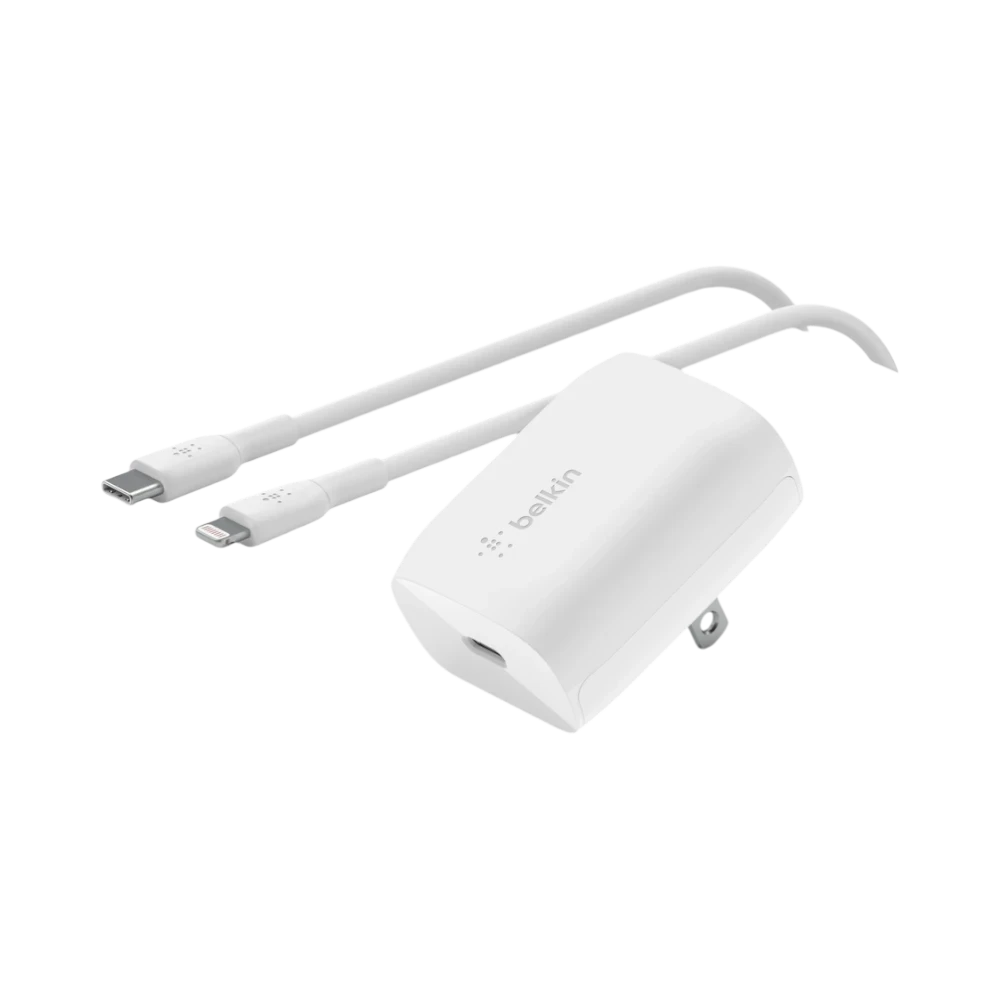 The Belkin WCA006dq1MWH-B5 is a 20 watt USB-C wall charger designed to quickly and safely power a wide range of devices, including iPhones, iPads, Samsung Galaxy phones, and other USB-C Power Delivery compatible gadgets. It comes with a one meter USB-C to Lightning cable, making it ready to use right out of the box for Apple devices. The charger’s compact design and advanced power management ensure efficient charging with minimal heat generation.