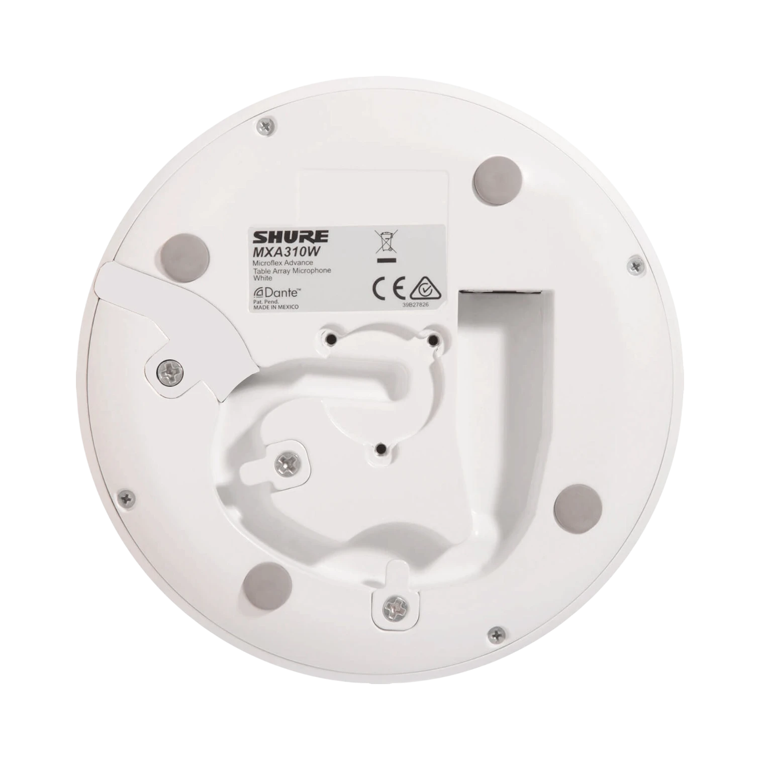 The Shure MXA310B is a tabletop conferencing microphone designed to deliver clear and intelligible speech in professional meeting environments. It features four independently steerable coverage zones that can be adjusted in 15-degree increments, allowing precise focus on each participant while minimizing background noise. The microphone connects via a single Ethernet cable that carries Dante or AES67 audio, control data, and Power over Ethernet, simplifying installation and placement without the need for separate power sources.