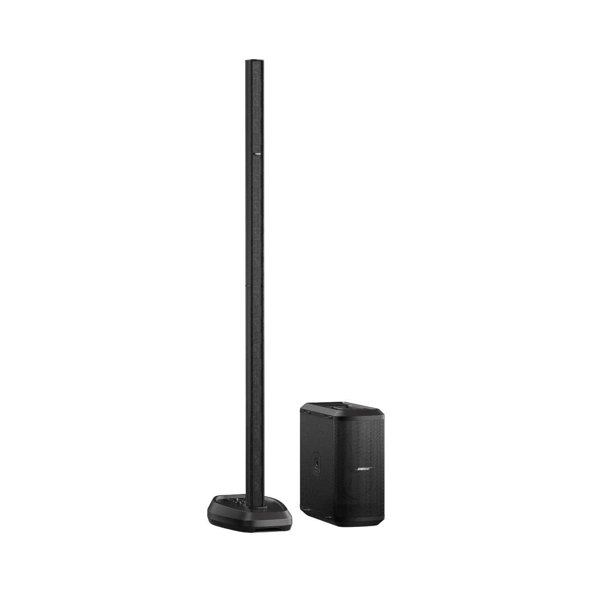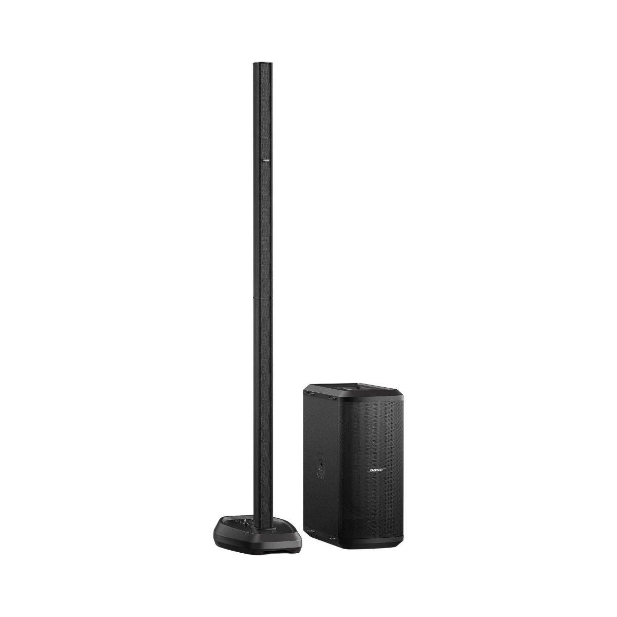 The Bose 840920-1100 is a portable line array speaker system designed to deliver clear and powerful sound with minimal setup. It features a 16-driver J-shaped array that spreads audio evenly across a wide 180-degree horizontal area, ensuring balanced sound coverage for small to medium-sized venues such as clubs, bars, and churches. The system includes a 10” by 18” RaceTrack subwoofer that provides deep bass while maintaining a compact and manageable size. Integrated Bluetooth streaming and a built-in three-channel mixer allow for versatile connectivity and easy control of microphones, instruments, and other audio sources.