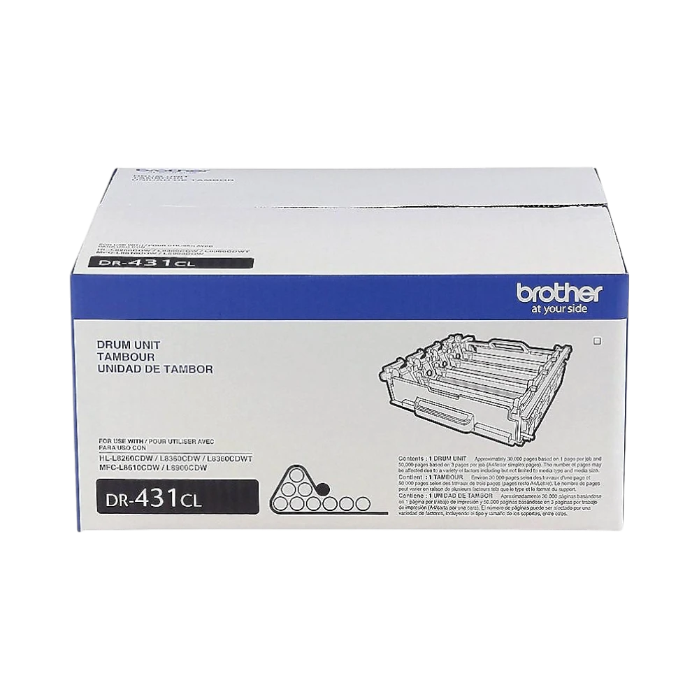 The Brother DR431CL is a color drum unit designed for use in several Brother laser printers, including the HL L8260CDW, HL L8360CDW, and MFC L8610CDW series. It plays a crucial role in transferring the laser image onto the paper, ensuring prints come out sharp, clean, and professional. With a high yield of up to 30,000 pages, this drum unit supports environments that require consistent, high-volume color printing without frequent replacements.