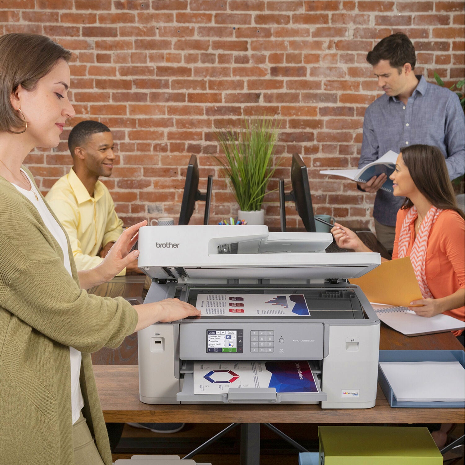 The MFC-J6555DW fits well in busy home offices or small teams that require a multifunction device capable of handling diverse document types and sizes. Its ability to print on ledger-sized paper and handle multipage jobs with the automatic document feeder makes it suitable for professionals who work with spreadsheets, marketing materials, or detailed plans. The long-lasting ink supply and energy-saving features help keep operating costs low, making it a practical choice for cost-conscious users who need reliable performance without frequent maintenance.