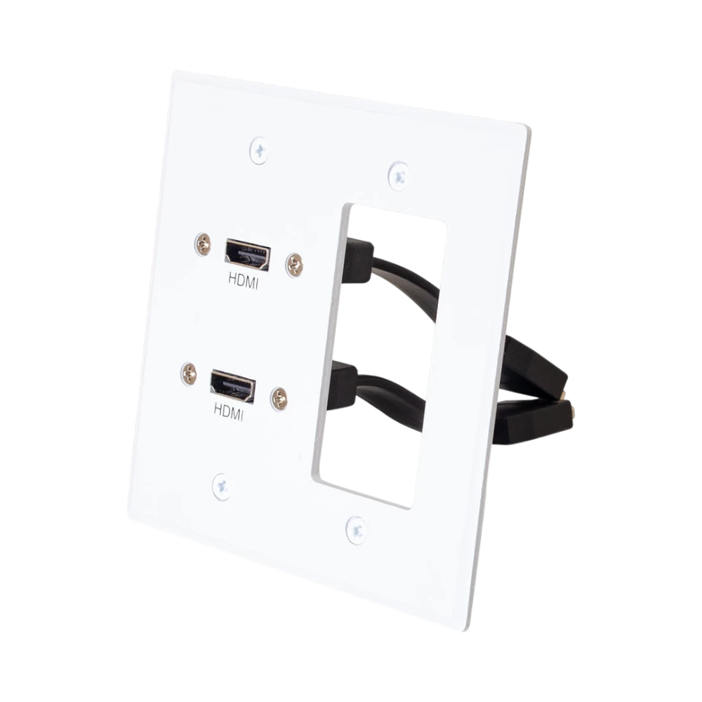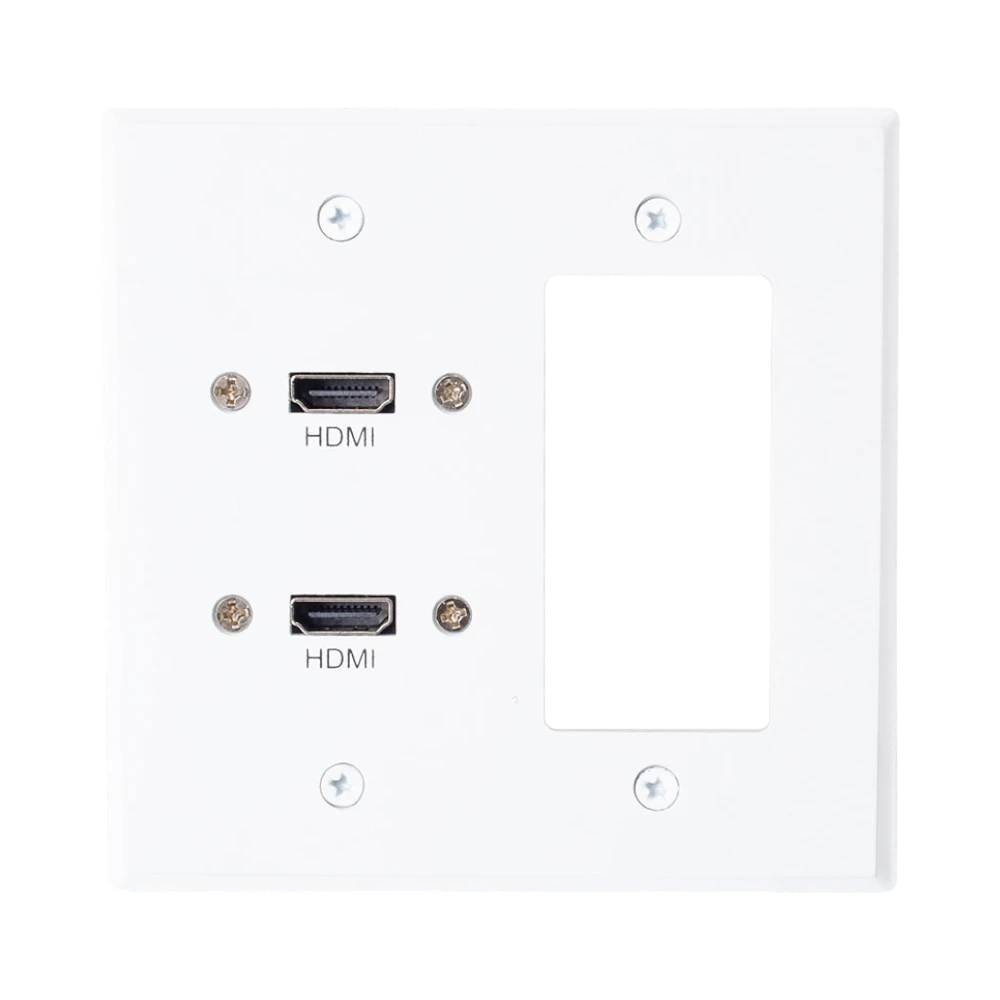 Dual HDMI Pass Through Double Gang Wall Plate with One Decorative Cutout (White)