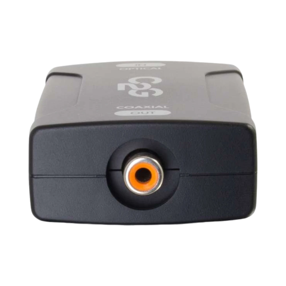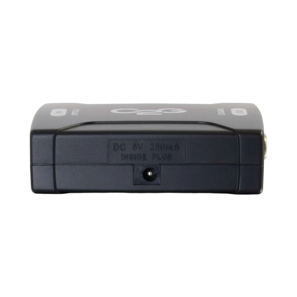 The C2G 40019 is an optical-to-coaxial digital audio converter designed to connect devices with TOSLINK optical outputs to receivers or amplifiers that accept coaxial digital inputs. It preserves the original digital audio quality, including surround sound formats like Dolby Digital and DTS, ensuring immersive sound for movies, games, and music. This compact unit is easy to install and fits neatly behind media cabinets or in equipment racks, making it a practical solution for upgrading or integrating audio systems without replacing existing components.