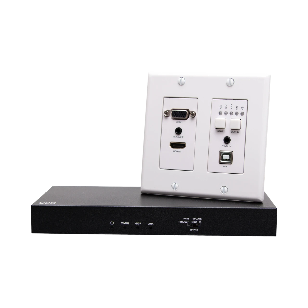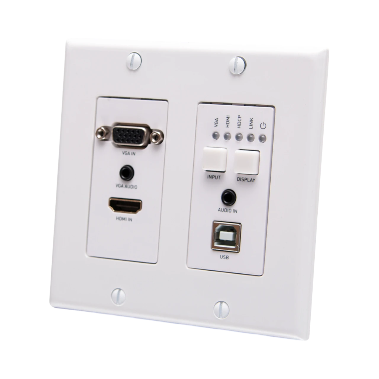HDMI HDBaseT + VGA, 3.5mm, and USB-B to A over Cat Extender Wall Plate Transmitter to Box Receiver, 4K 60Hz