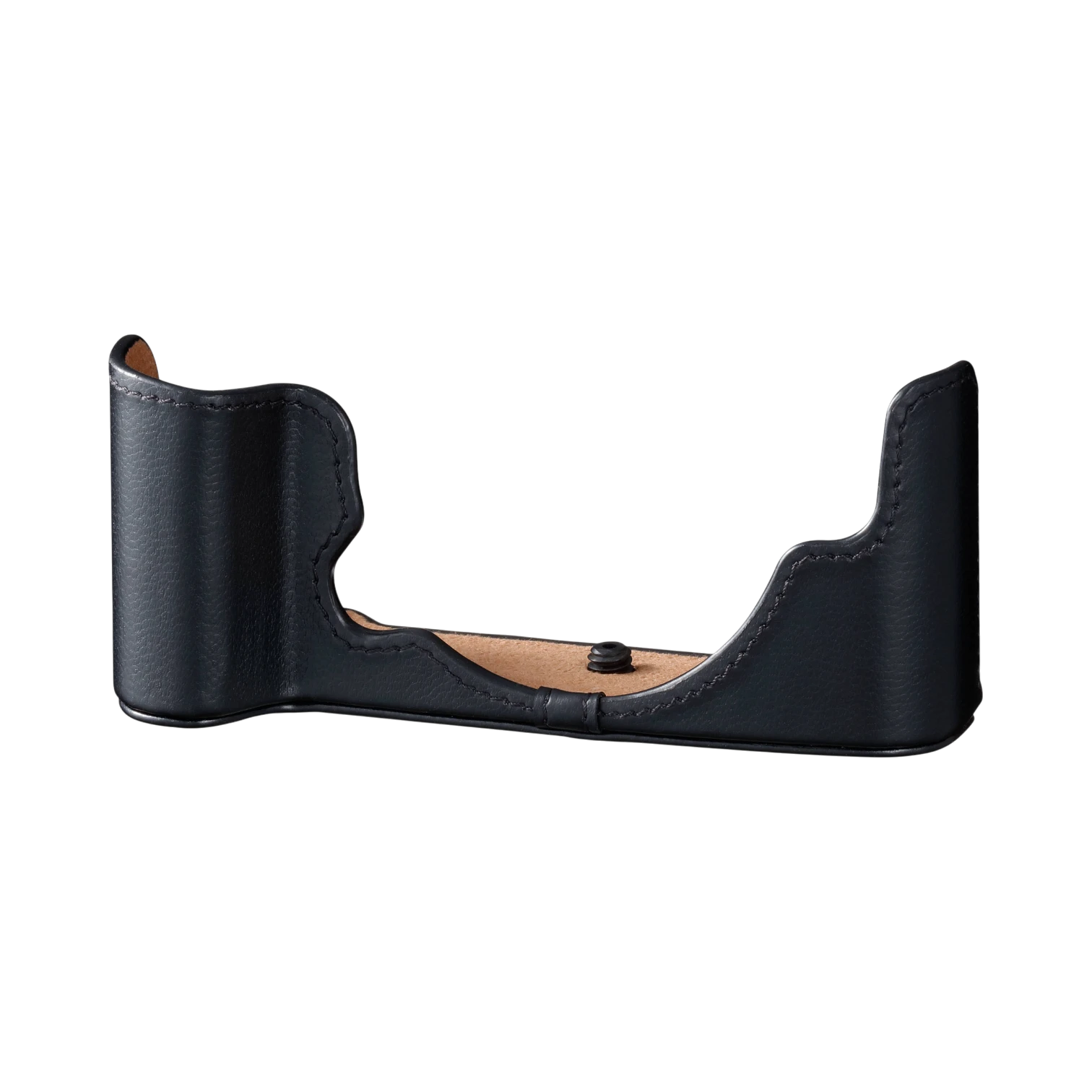 - Form-fitting leather design that shields the camera from light impacts and scratches while maintaining full control access