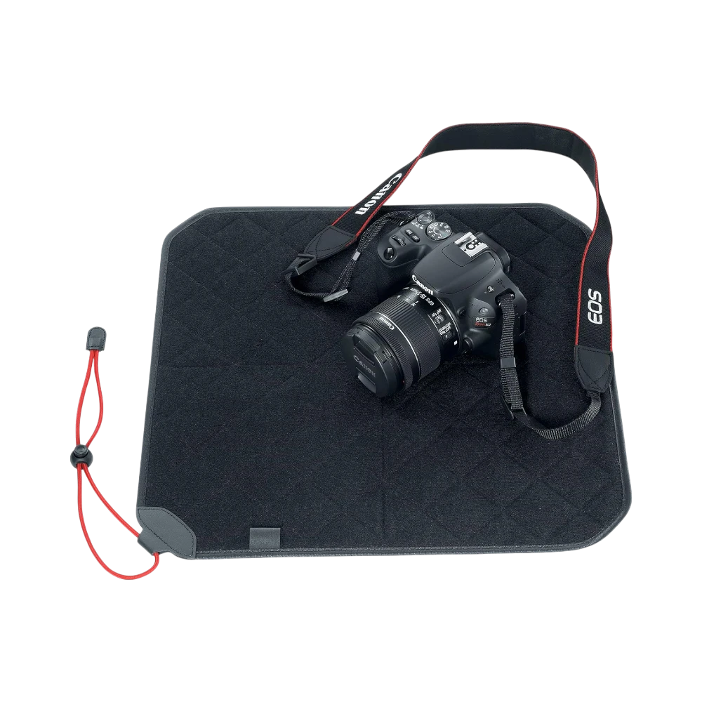 - Microfiber material that gently cushions delicate surfaces while also serving as a cleaning cloth for fingerprints and smudges on lenses and camera screens